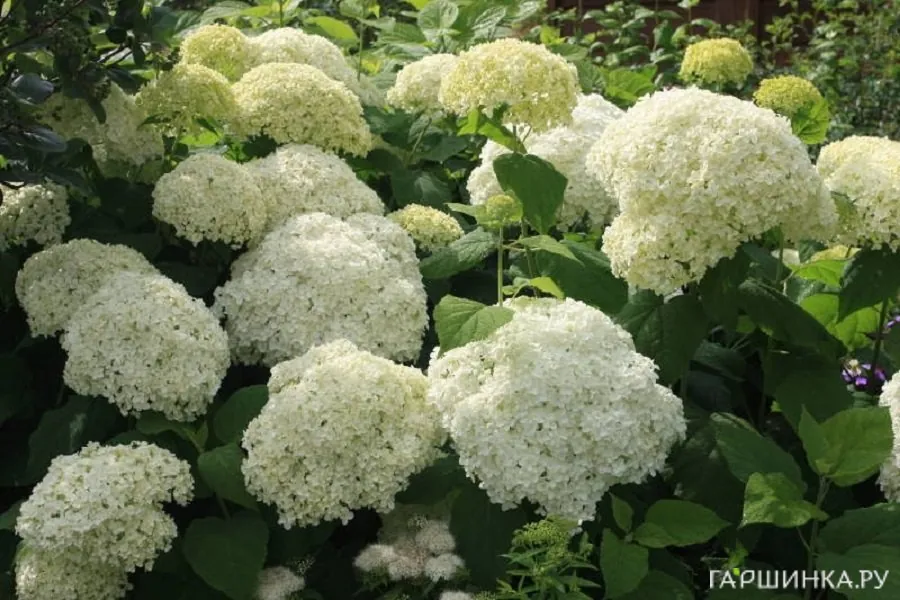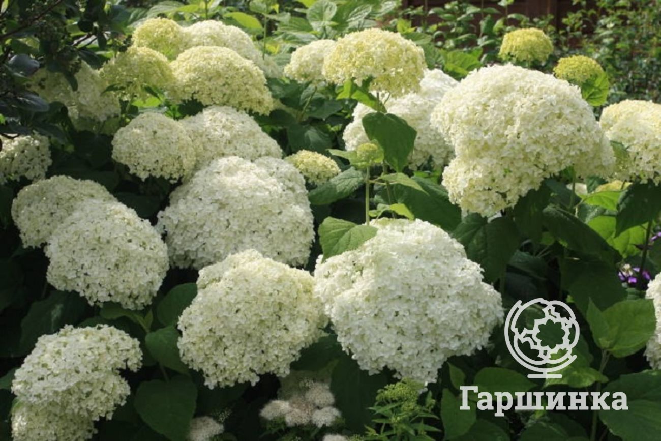 Гортензия древовидная Баунти (Bounty) – длительно цветущий сорт с крупными сизо-зелеными листьями и большими белыми соцветиями. В отличие от других сортов, хорошо растет на солнце, зимостойка, но даже при подмерзании отрастает и полностью восстанавливается.