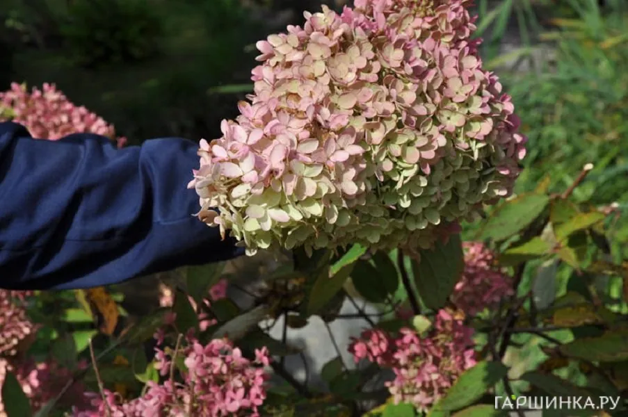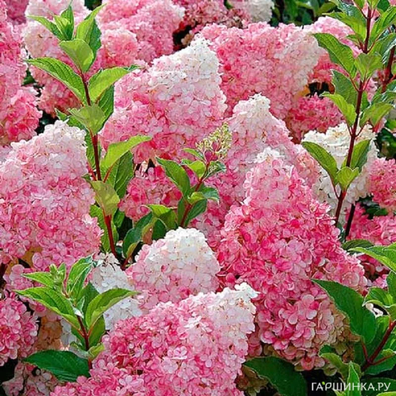 Сорт Ванила Фрайз (Vanille-Fraise) – красивейший кустарник. Соцветия пирамидальные, крупные, до 25 см длиной, бело-розовые. Цветет Ванила Фрайз с июня до октября, выносит морозы до -29 °С, но молодые растения на зиму желательно прикрыть.