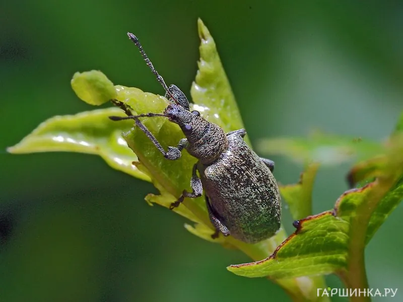 ДОЛГОНОСИК. Повреждают большинство плодово-ягодных растений. Почки буреют и опадают либо из них образуются уродливые листья, бутоны или завязи. В начале июня начинается преждевременный листопад, опадает до 50% листвы. Растение ослаблено, плоды уродливые, со временем загнивают, упав на землю или прямо на дереве.