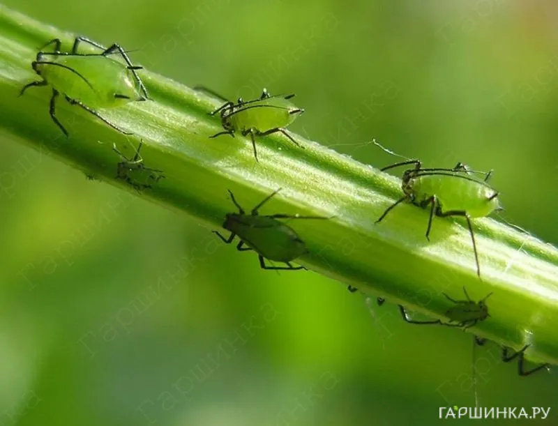 - Борьба. Опрыскивание растений инсектицидами Актеллик, Би-58 Новый, Фуфанон.
