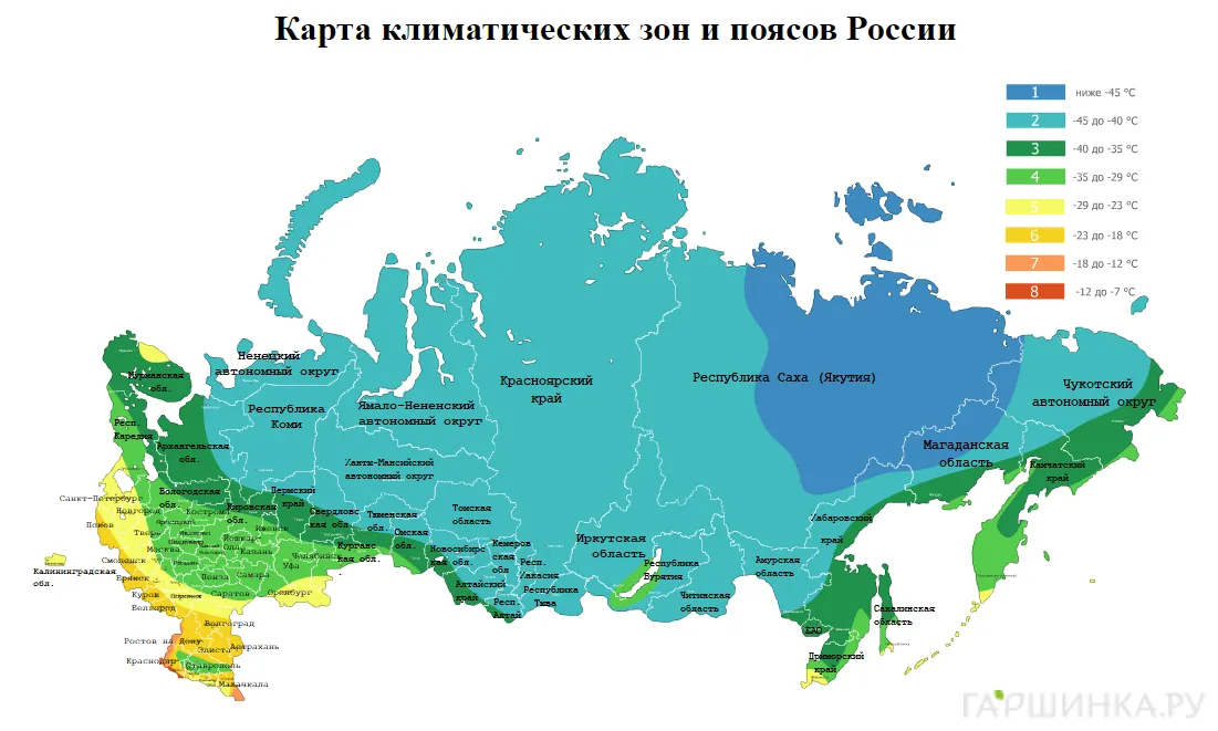 Зоны зимостойкости – это климатические области земного шара, подходящие для выращивания тех или иных видов растений. Они основаны на температурной шкале, показывающей среднегодовую минимальную температуру в градусах Цельсия.