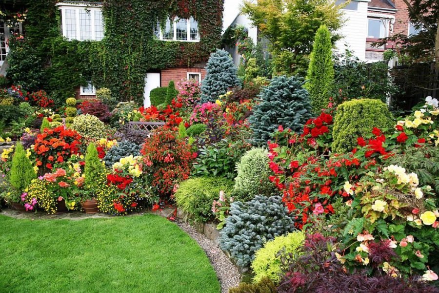- Ограниченное сочетание расцветок садовых растений, исключающее броские контрасты оттенков и большое разнообразие культур.