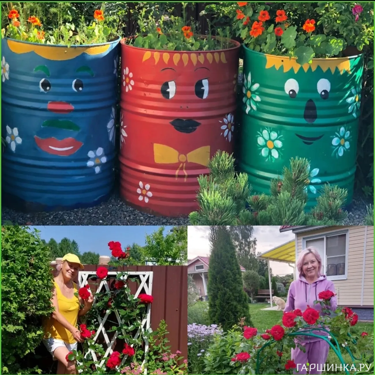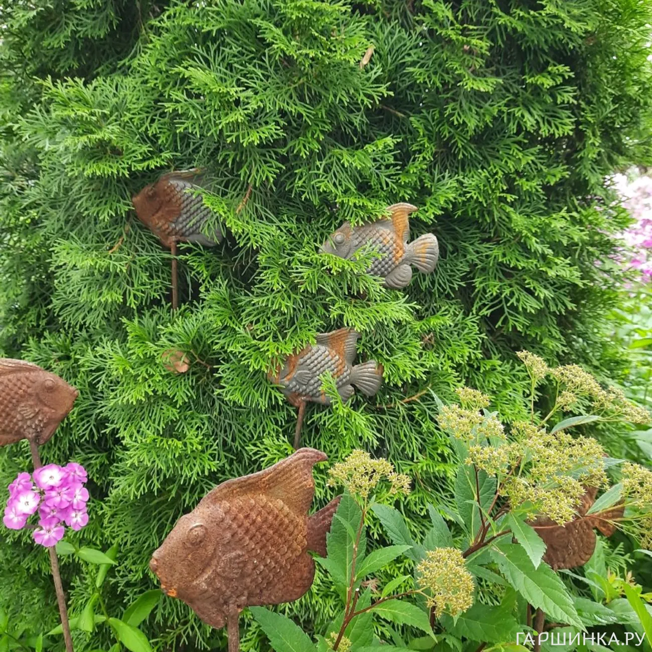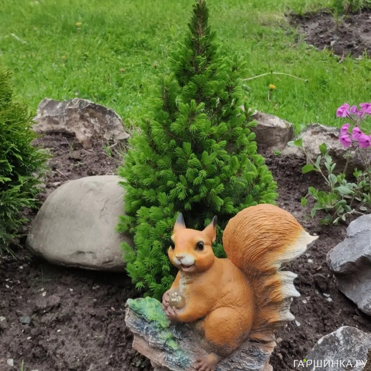 Все в саду делаем сами: и сезонные работы, и композиции, и декор. Участвует вся семья - папа, муж и наши двое ребятишек.