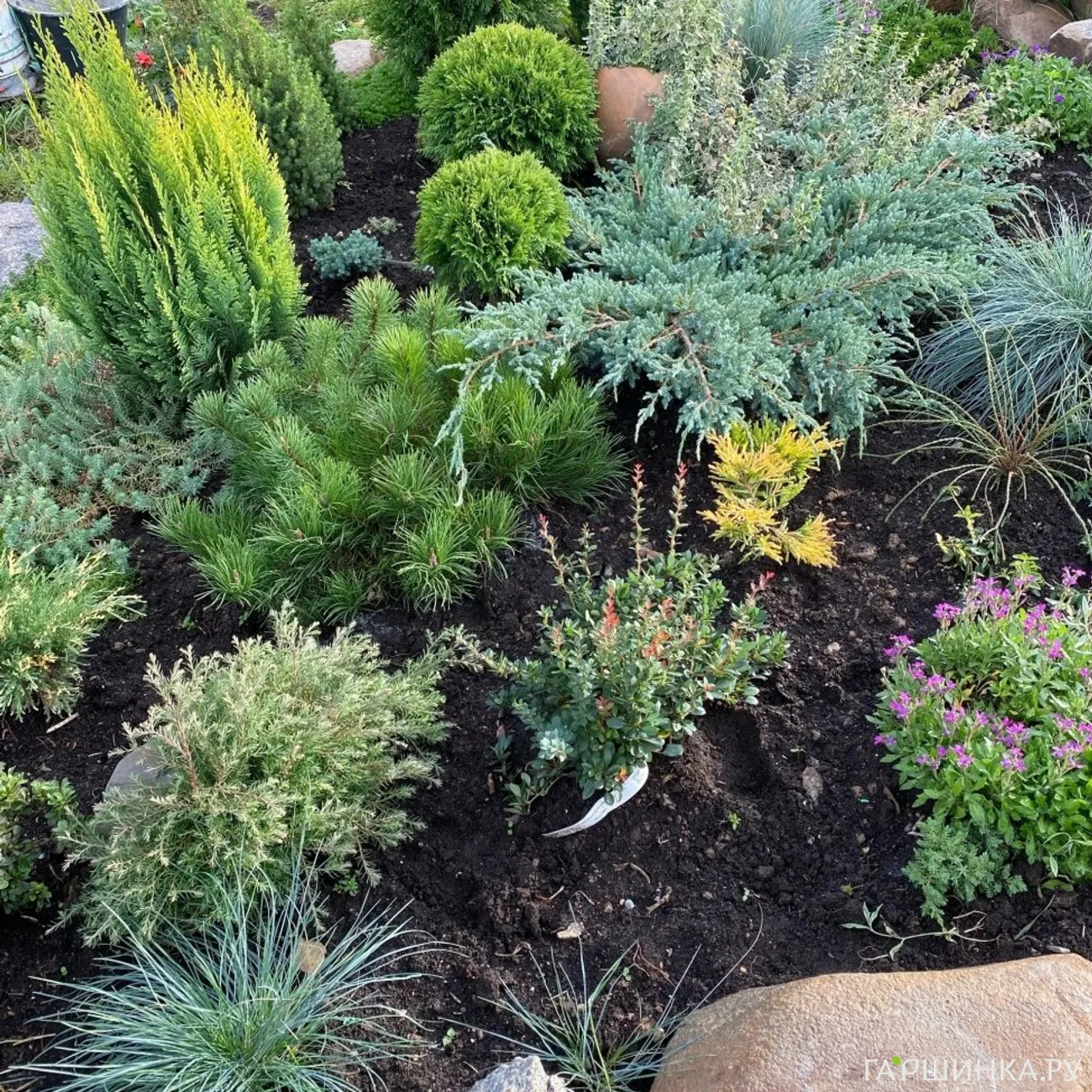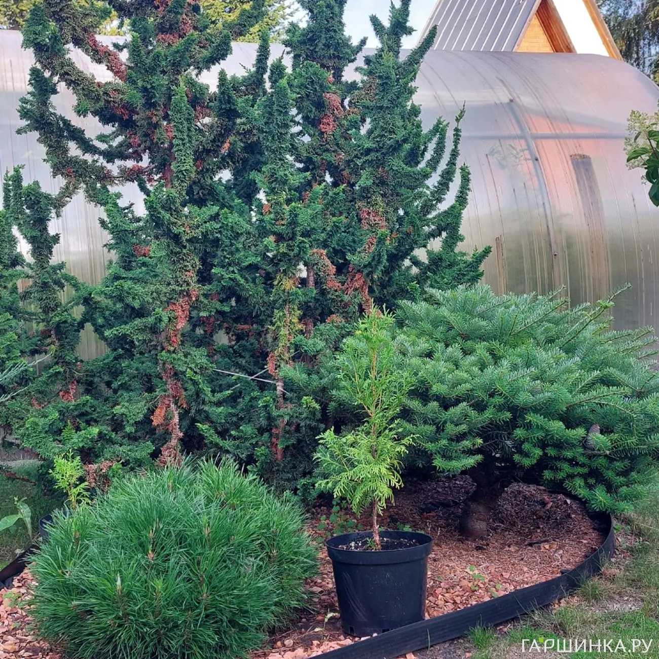Было парочку, где находились пересаженые с другого нашего участка осенью 2024 :туи, можжевельники, ели