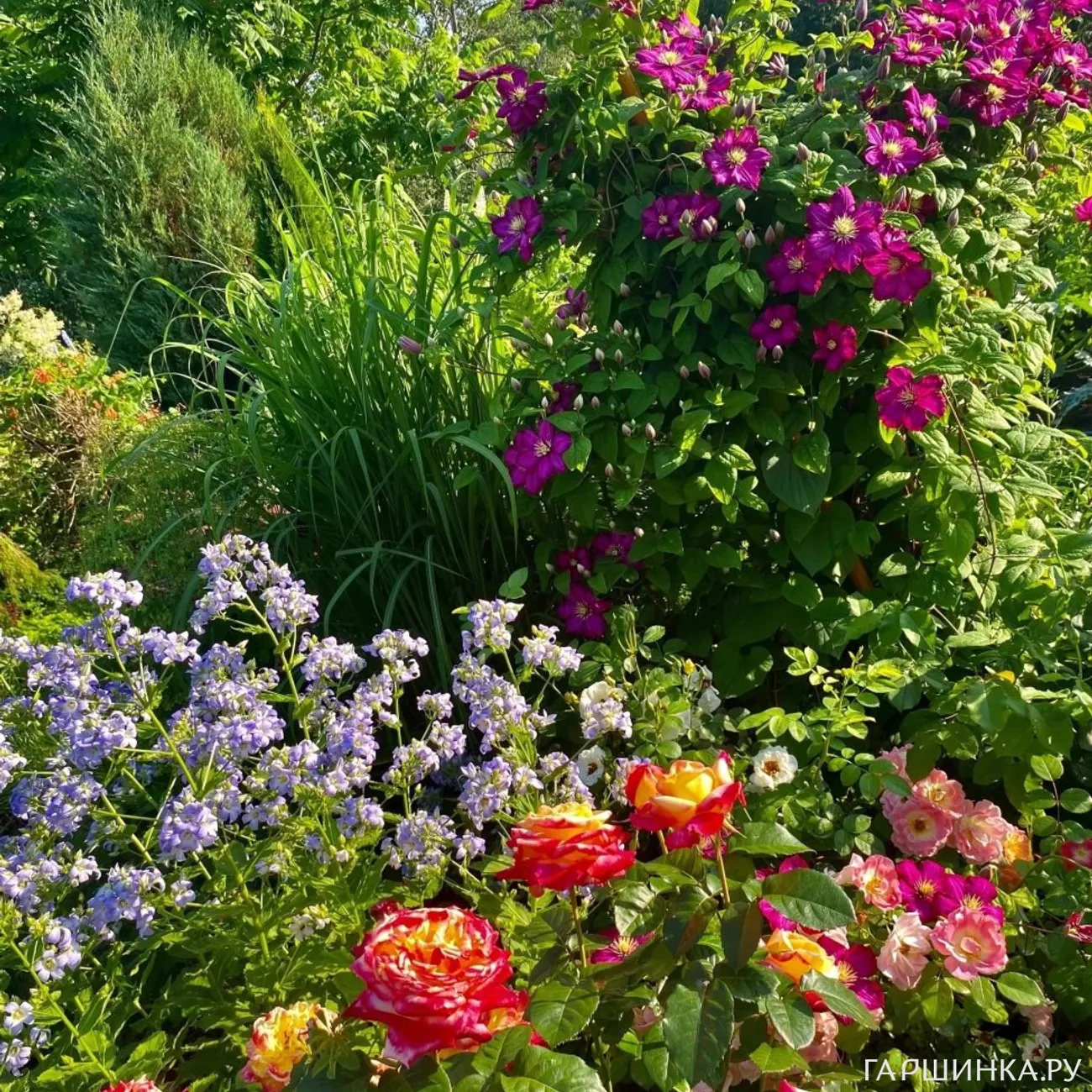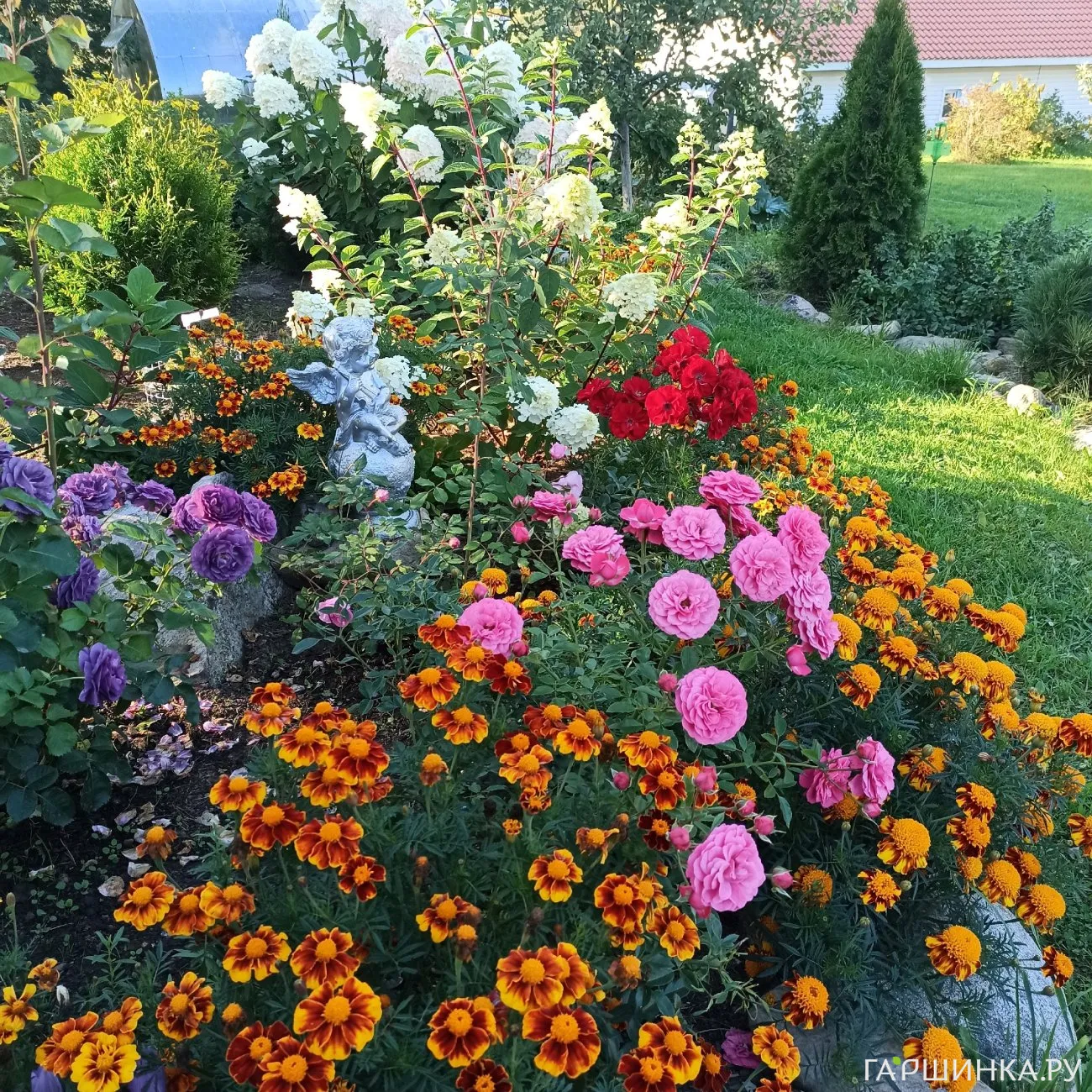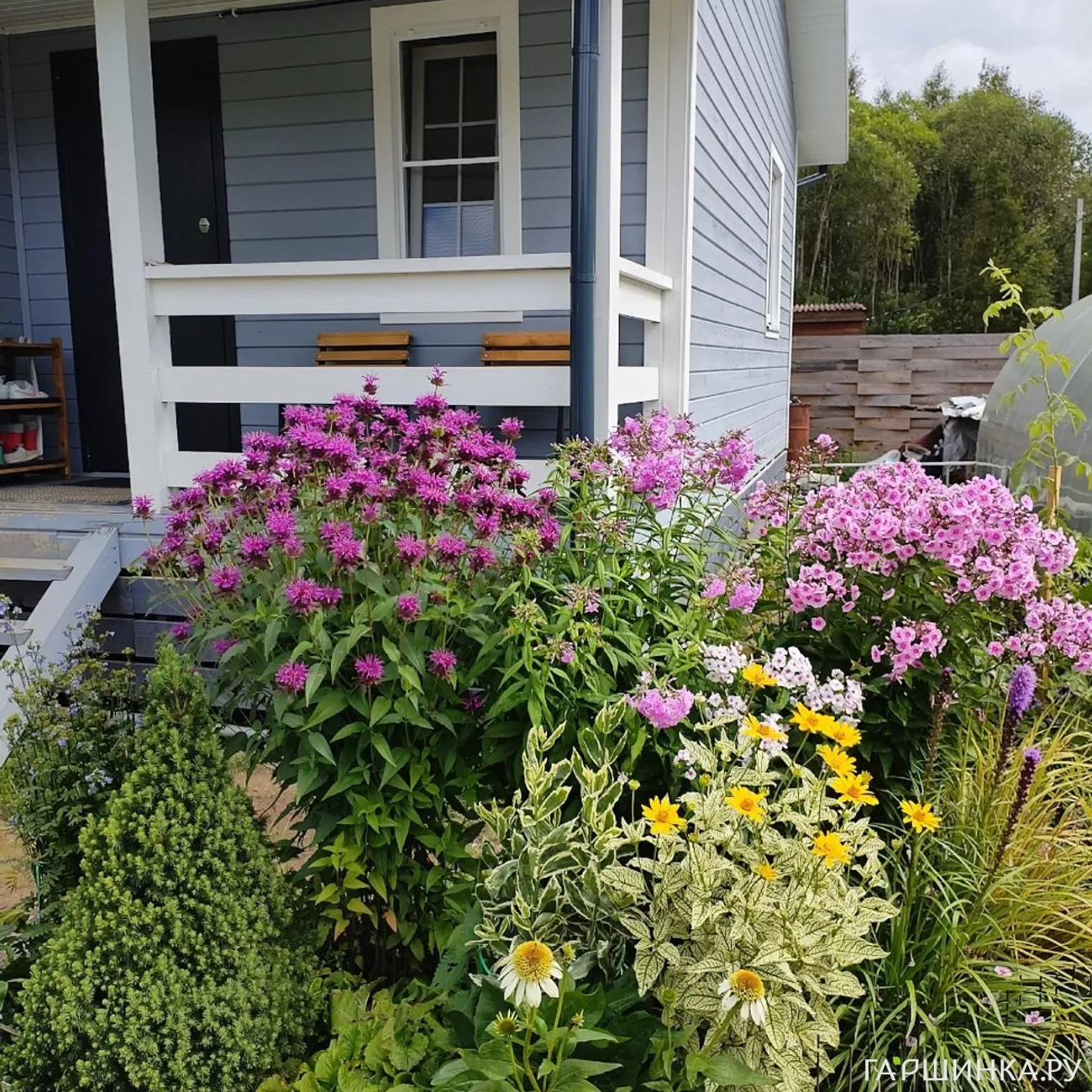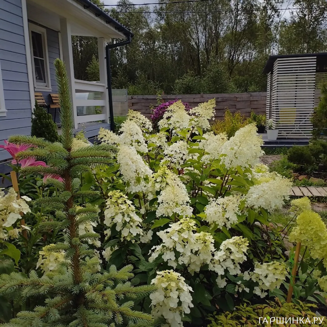 Обожаю: розы, флоксы, гортензии, лапчатку, ирисы, лаванду, рододендроны, ромашки, полевые цветы... Посадила очень много кустов: пузыреплодник, спиреи, барбарисы, лох серебристый, сирени, бересклет, чубушник, снежноягодники... Всё и не перечислить.