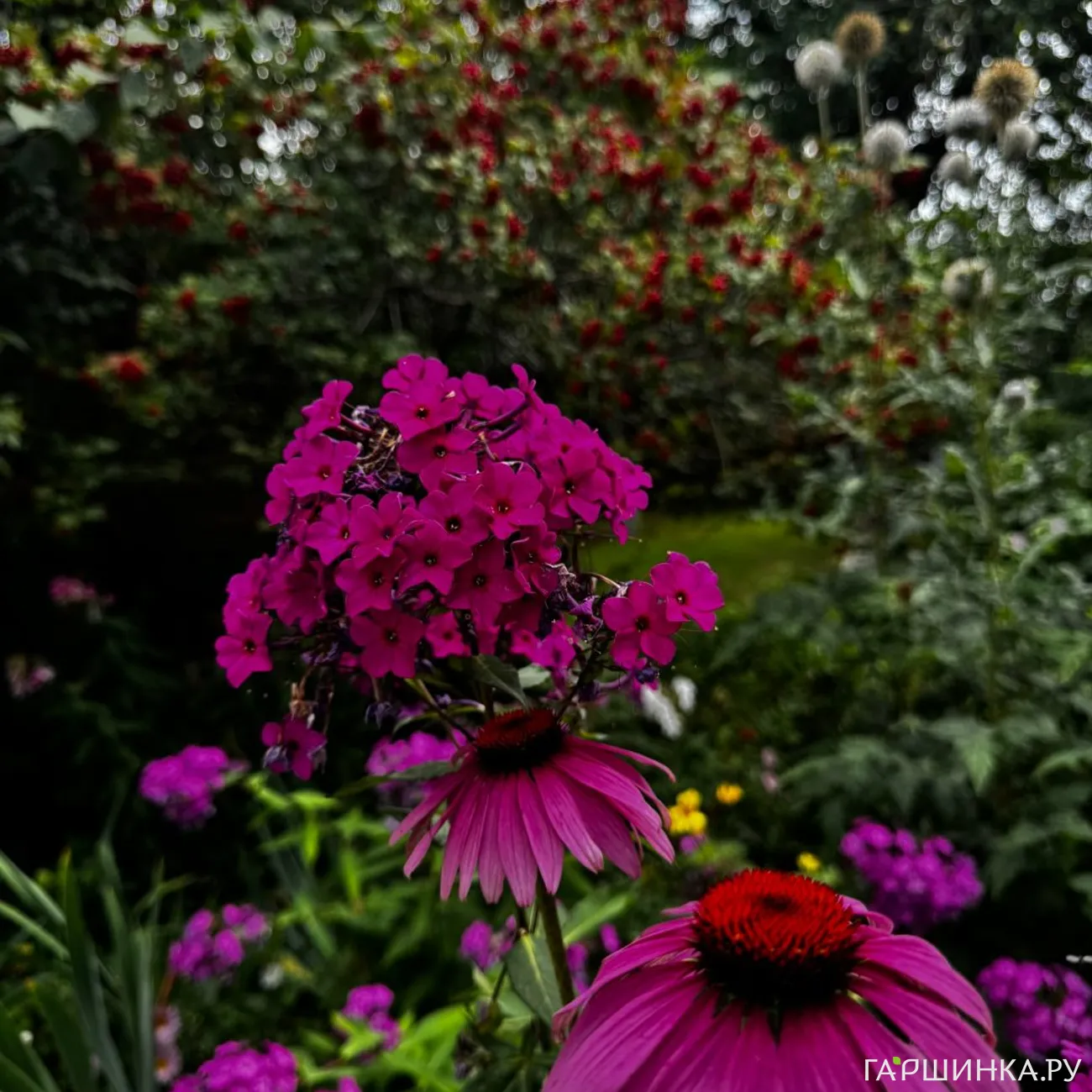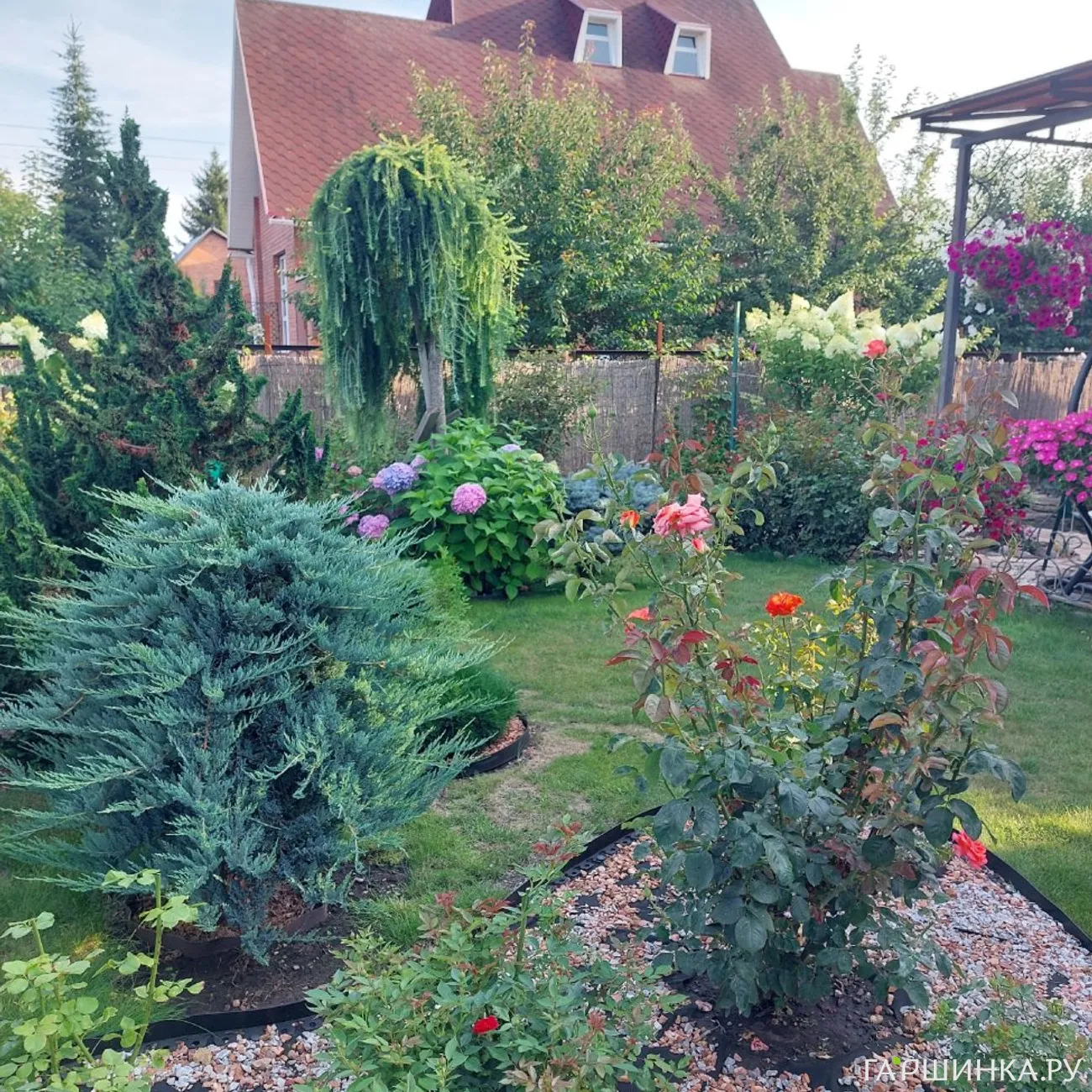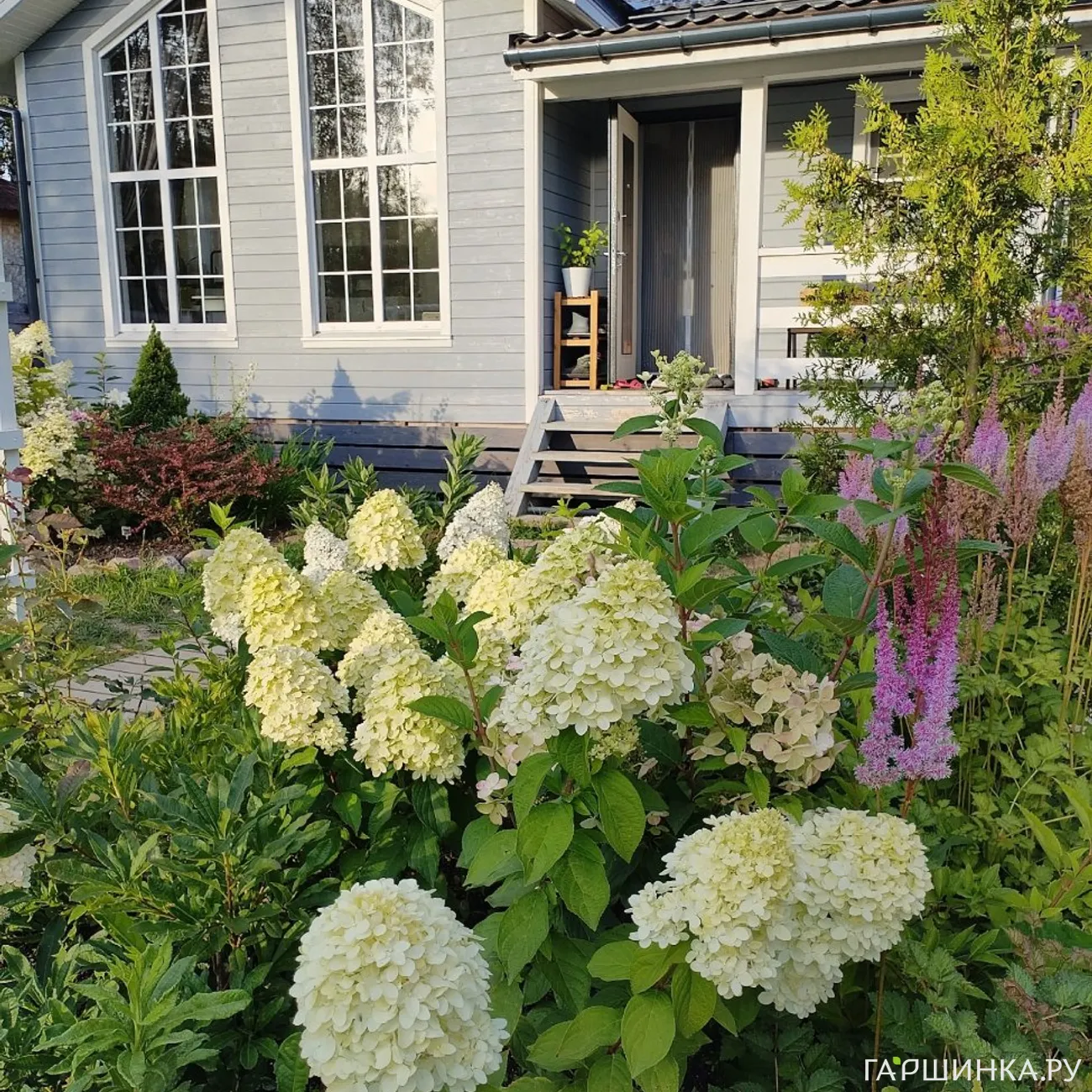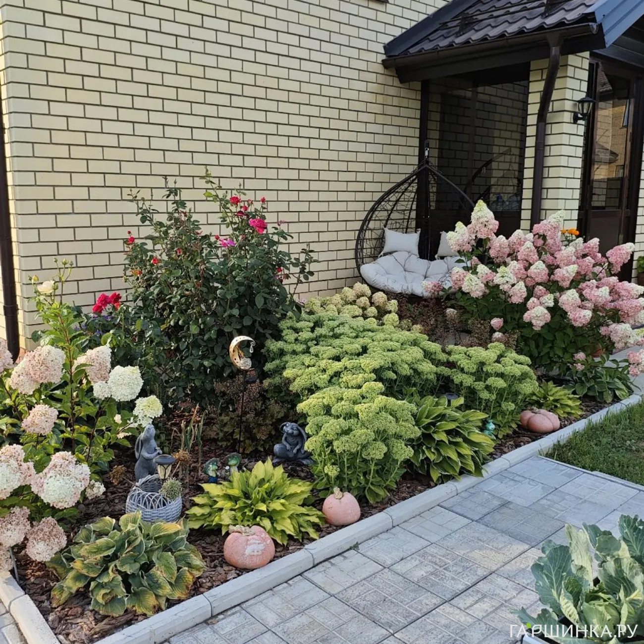 ( По сортам растений писать сложно, но если гортензии - для сада больше подходят с мотыльковыми кистями, к примеру Куишу. Если розы - полиантовые, канадские, флорибунды. Обожаю Помпонелу, Леонардо Да Винчи, Балерину. Сажаю декоративные яблони, любимица - Пионерка. С флоксами такое дело - выяснила, что сортовые типа дымчатых не очень то стойкие в моем климате, поэтому сажаю простые, типа от соседей) долго описывать все растения, у меня их очень много - сад цветет с апреля до ноября, если осень мягкая. И еще его потом украшают плоды на рябине, шиповнике, декоративных яблонях и бересклете)