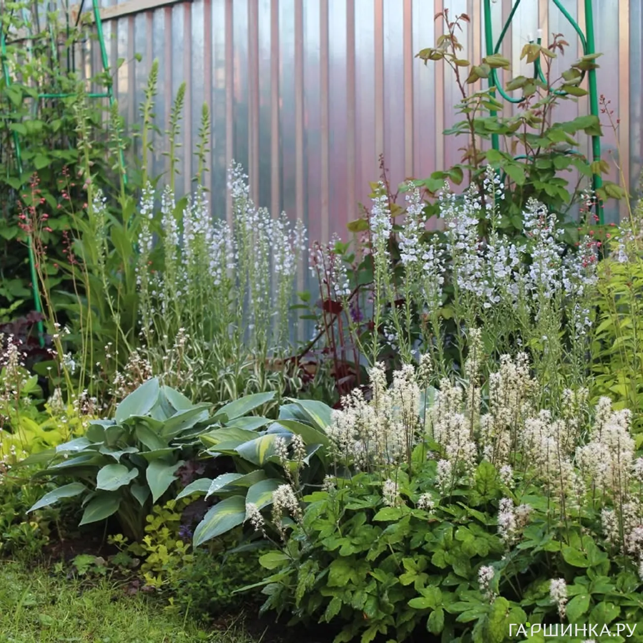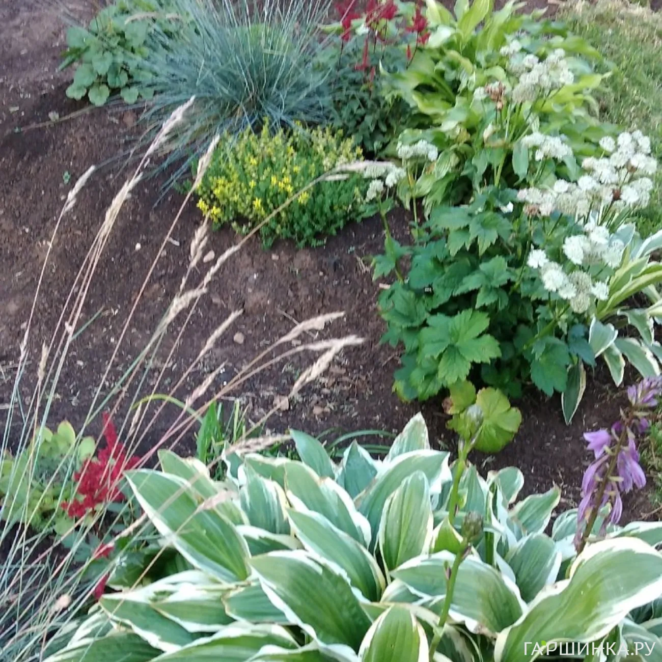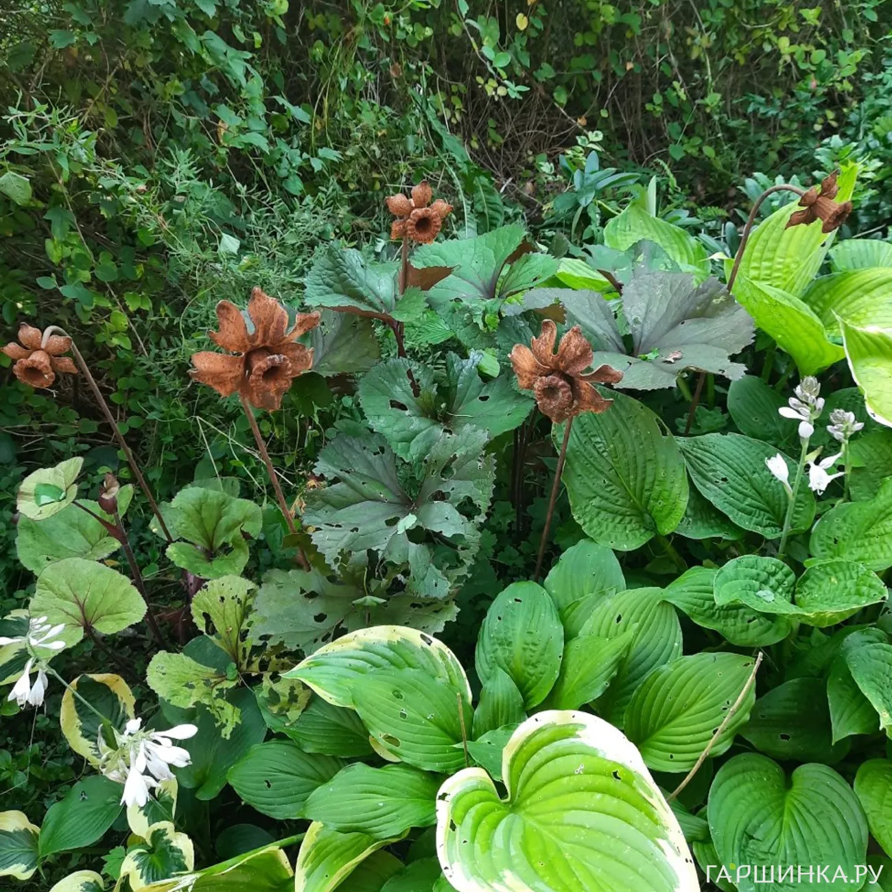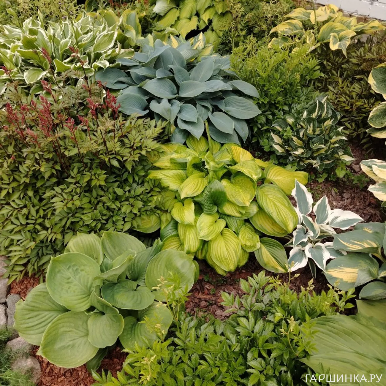 А затененные участки сада, где красивоцветущим некомфортно, украшают композиции из тенелюбивых растений: хост, папоротников, клопогонов, бузульников и т.д.