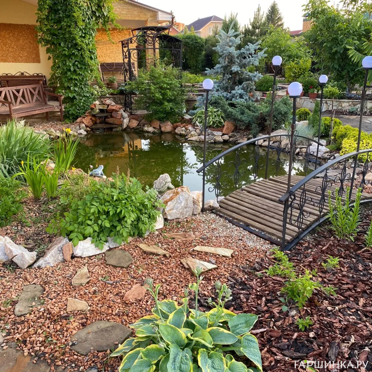 - Эстетическое удовольствие и украшение ландшафта: Правильно спроектированный пруд станет настоящим украшением вашего сада, гармонично вписываясь в его дизайн. Он может стать центром композиции, дополненным каскадами, мостиками, прибрежными растениями и камнями. Вы сможете создать именно тот стиль, который вам нравится – от строгого минимализма до буйного цветения водных растений.