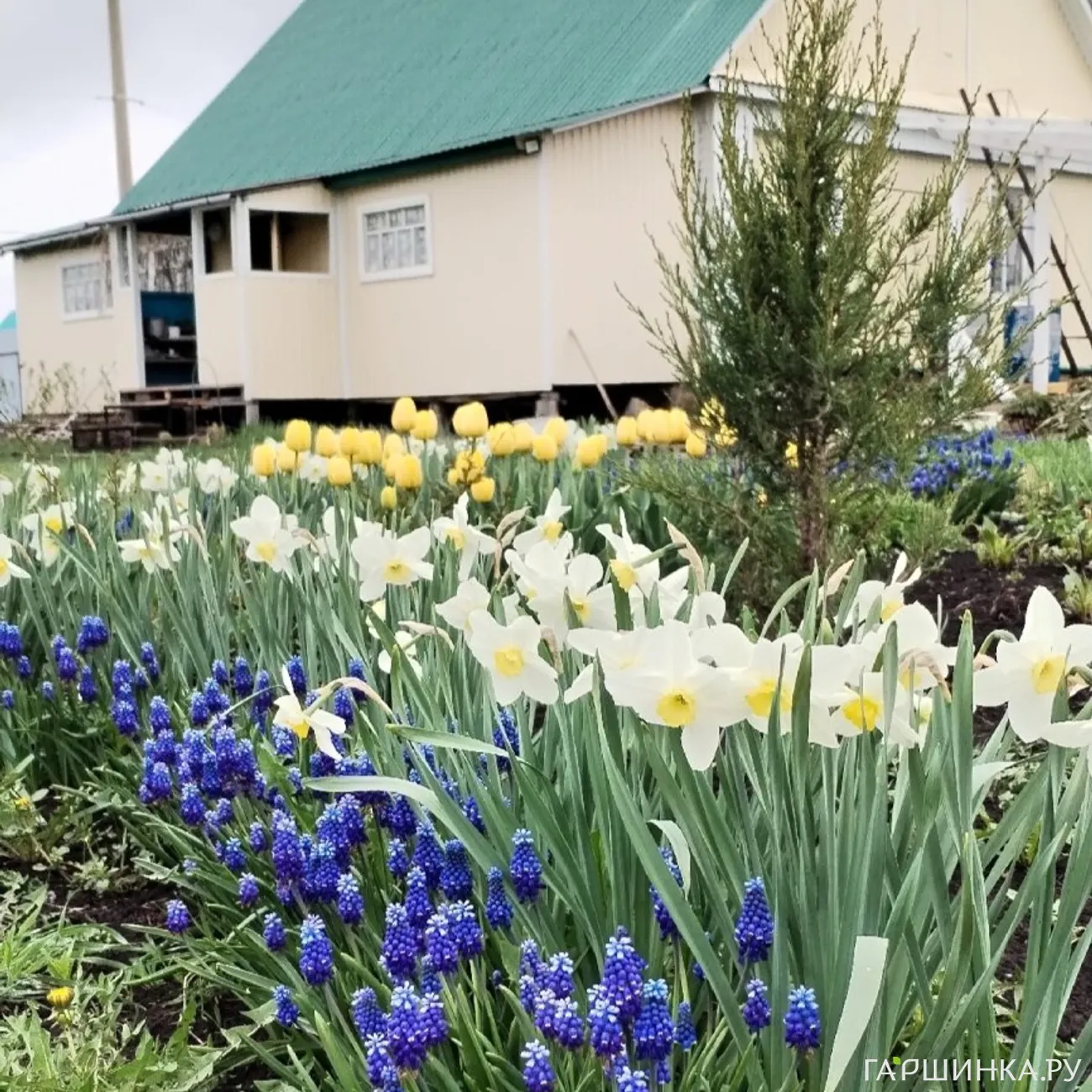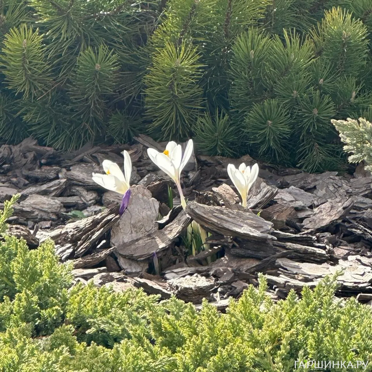 В марте ещё даже клумб не былоБыло парочку, где находились пересаженые с другого нашего участка осенью 2024 :туи, можжевельники, ели