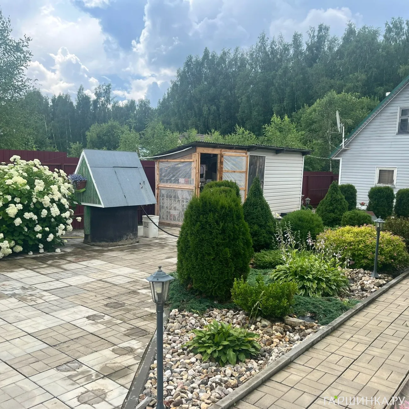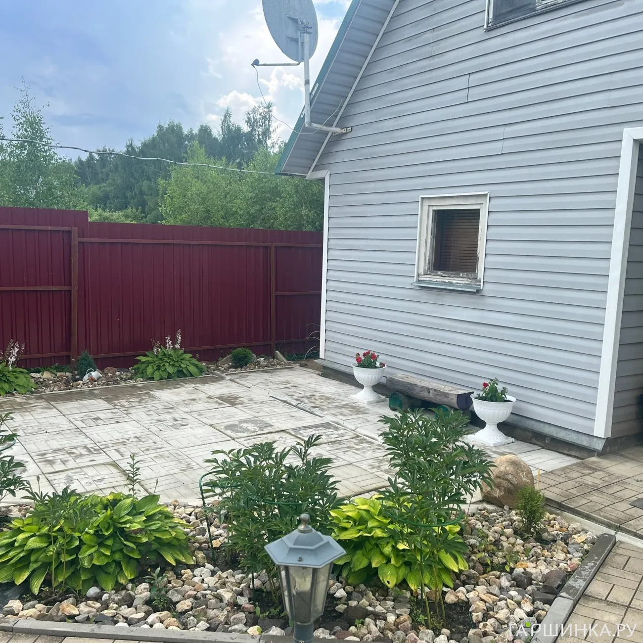 Меня зовут Елена. Я из небольшой деревни Ударник Ленинградской области. Она находится на полуострове в живописном месте между двух рек Лугой и Мертвицей, недалеко от Финского залива. Переехали с мужем чуть более 10 лет на совершенно пустое поле в 15 соток. Начали строительство и благоустройство территории. Приходили с работы, ужинали и на "вторую смену", трудились до позднего вечера. Строили, выкладывали дорожки и бордюры, сажали и пересаживали растения. Я помогала мужу в строительстве, а он - мне. Конечно же уставали, но результатом оставались довольны!