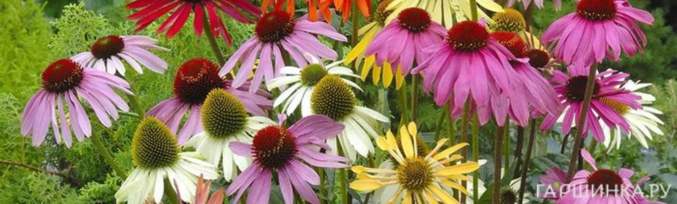 Эхинацея, будучи достаточно неприхотливым растением, поражает воображение садоводов яркостью и изяществом крупных декоративных цветков, отдалённо напоминающих ромашки. В качестве знаменитого нектароноса она привлечёт множество пчёл и бабочек, которые не только дополнительно украсят сад, но и опылят другие культуры. Благодаря работе селекционеров растение прочно вошло в число фаворитов садовой моды: современные сортовые эхинацеи, представленные в нашей публикации, восхищают богатством цветовой палитры, от белоснежных и пурпурных до лососевых и малиновых оттенков лепестков.