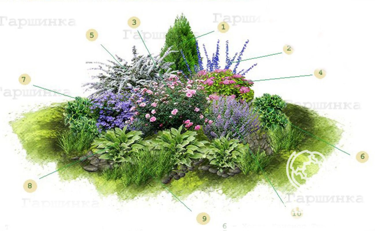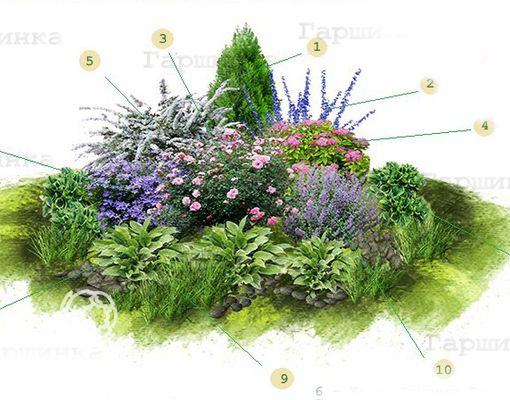 Цветник "Нежный". Его изящная цветовая гамма и ажурное строение украсят любой сад. Подойдет для хорошо освещенных и слегка притененных участков. Все растения в его составе довольно неприхотливы и зимостойки.