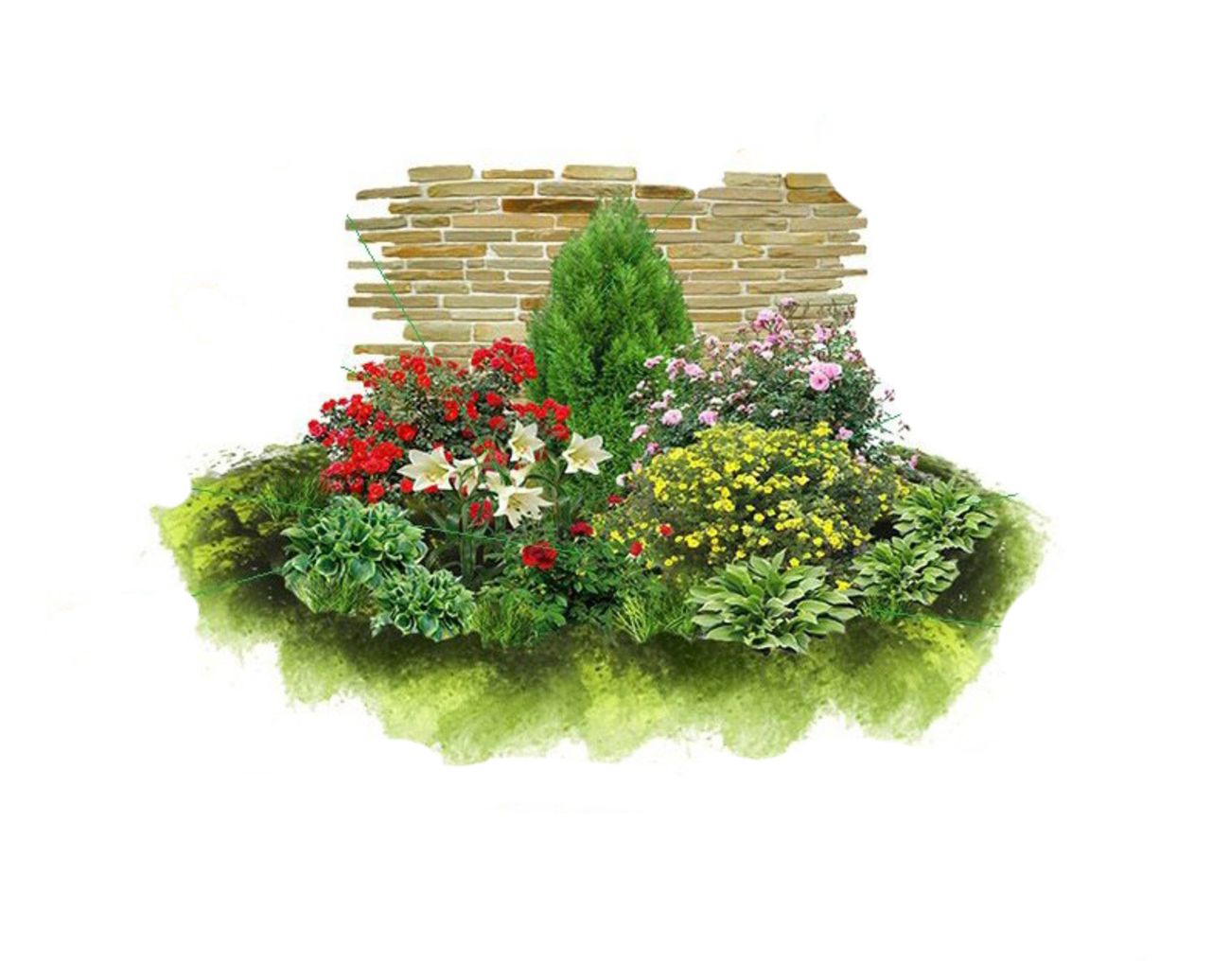 Цветник "У каменной стены". Зачастую возникает необходимость задекорировать пространство возле стены дома, беседки, забора. Именно для таких случаев и предназначен этот цветник.