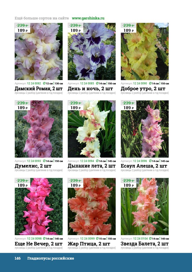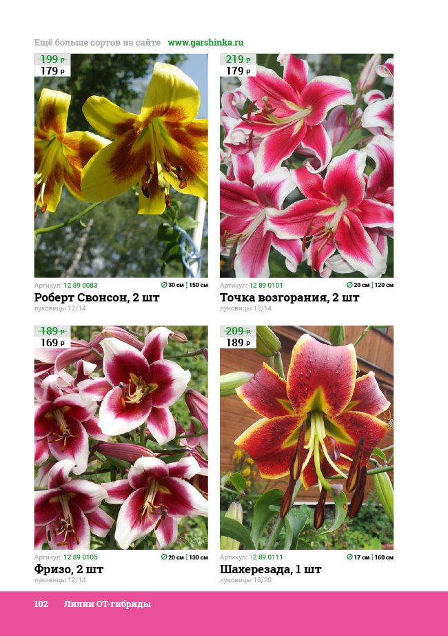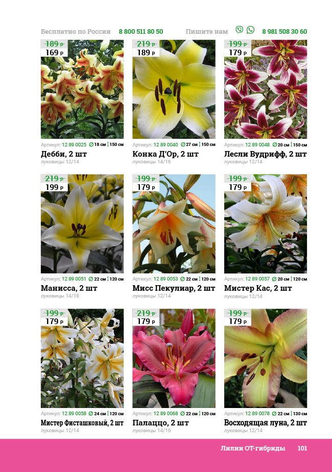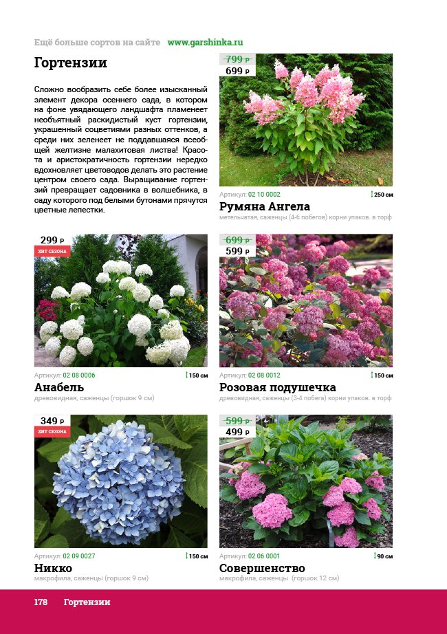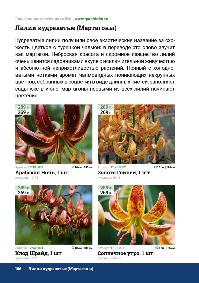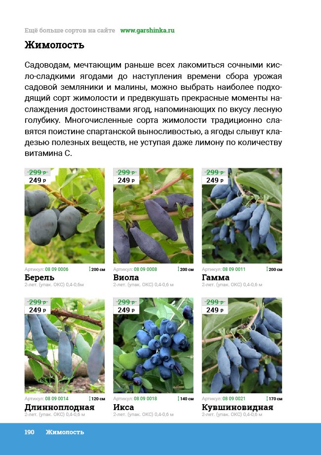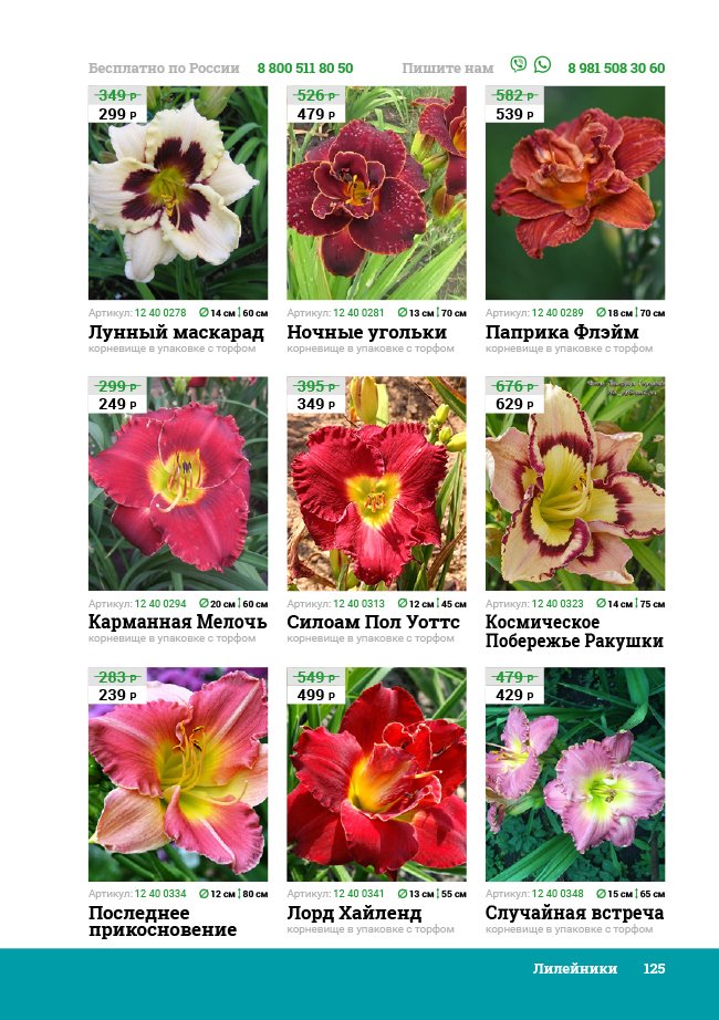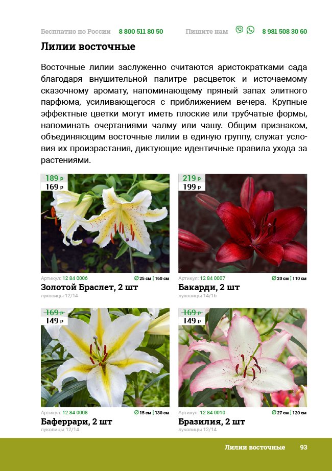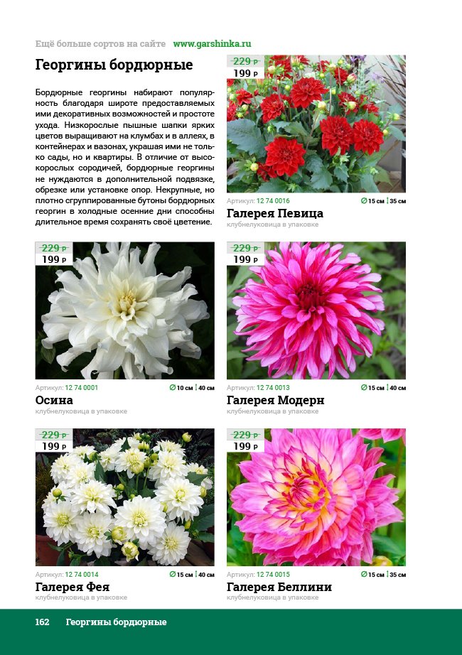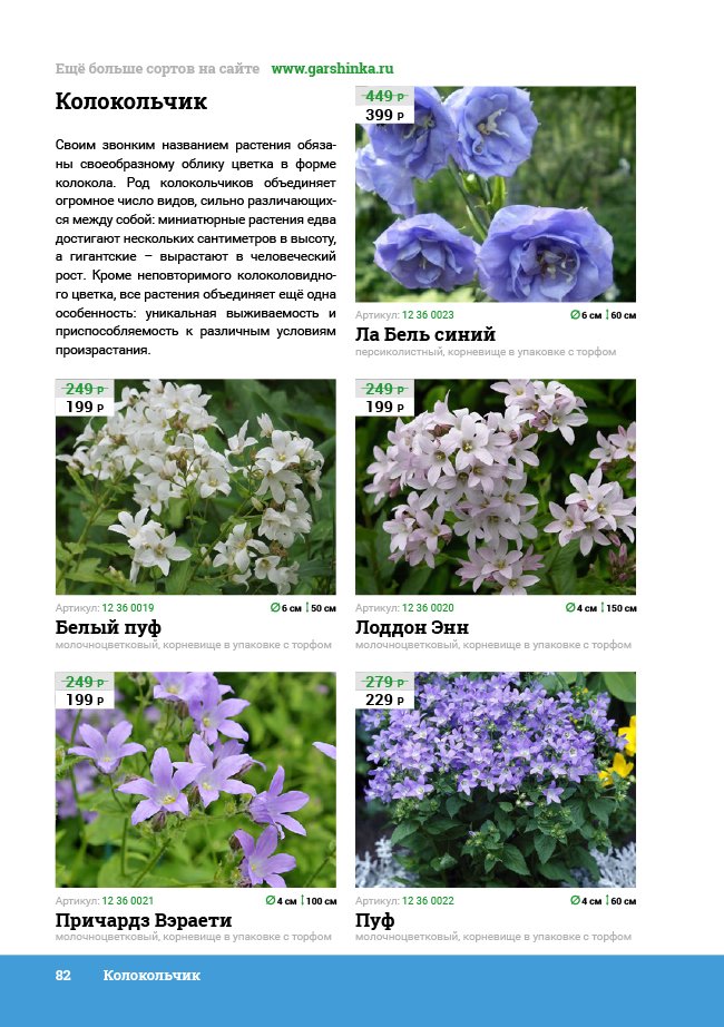 В новом универсальном и наиболее подробном каталоге мы представляем широкий ассортимент посевного и посадочного материала из отечественных и зарубежных питомников. Товарное предложение составлено только из высококачественных семян, эксклюзивных саженцев роз, плодовых и декоративных кустарников, хвойных растений, корневищных и луковичных многолетников, экзотических и любимых многими садоводами культур, способных придать любому возделываемому уголку облик нарядного цветущего сада.