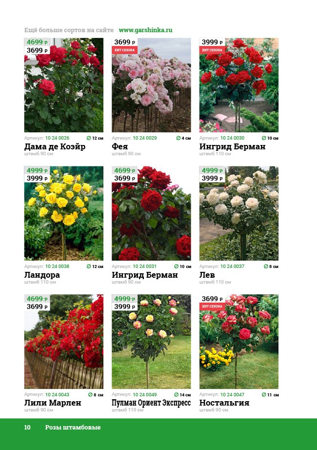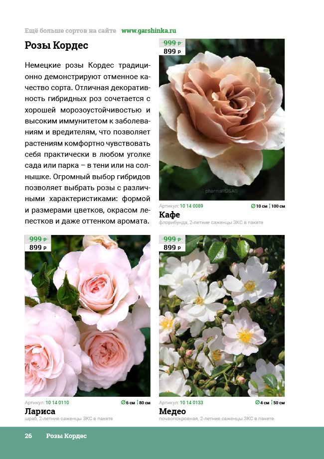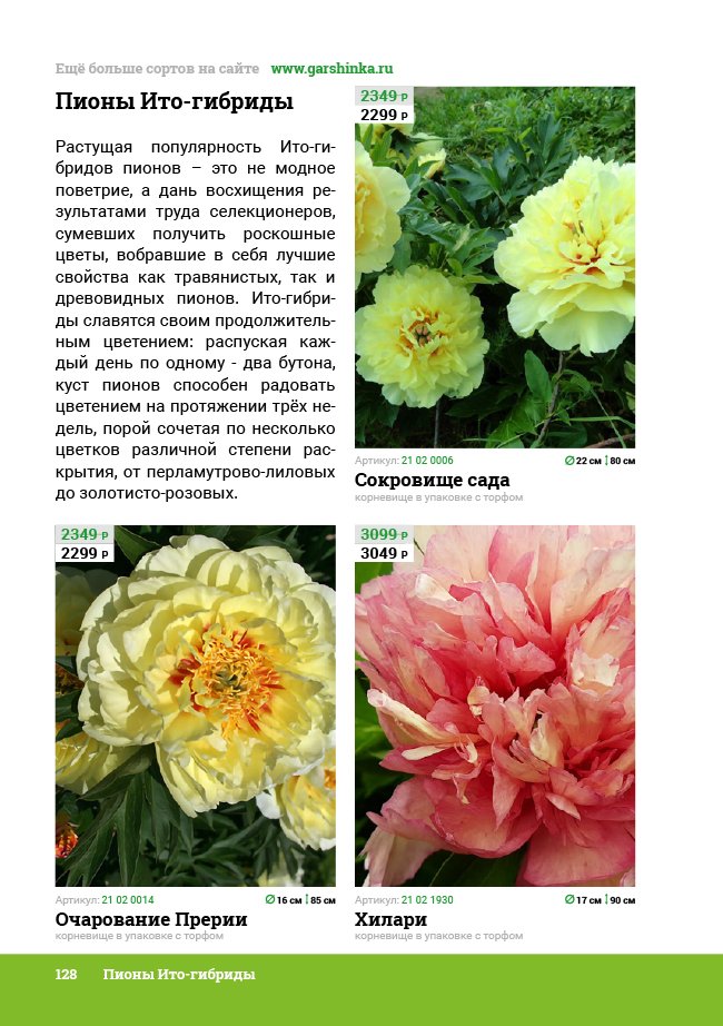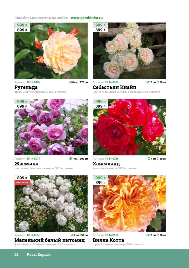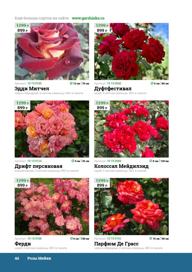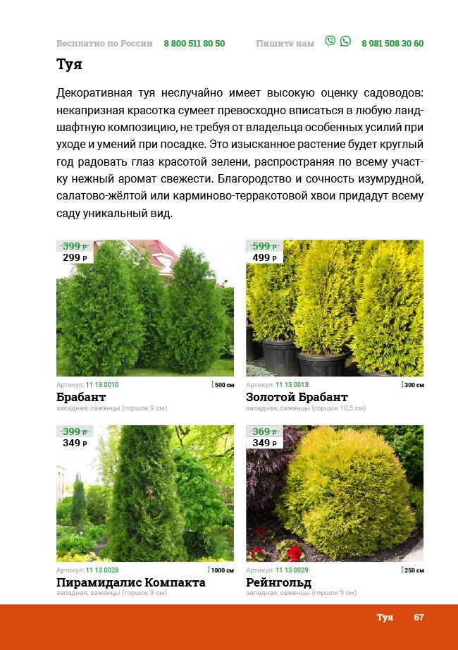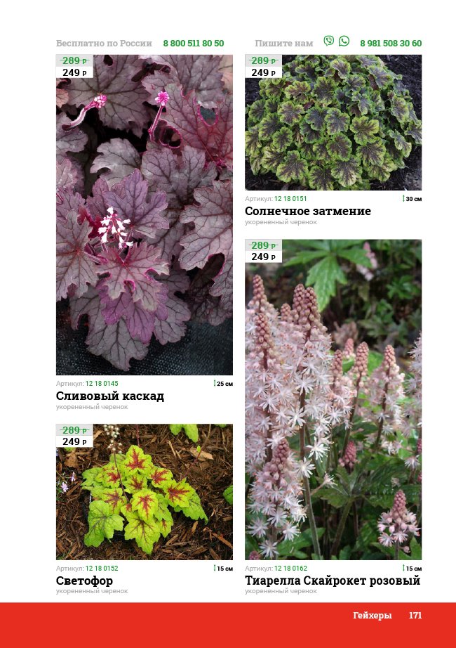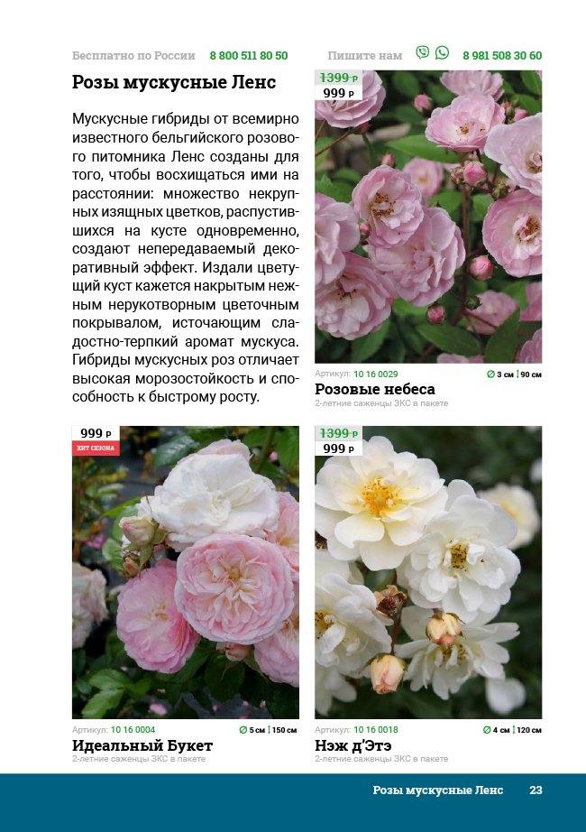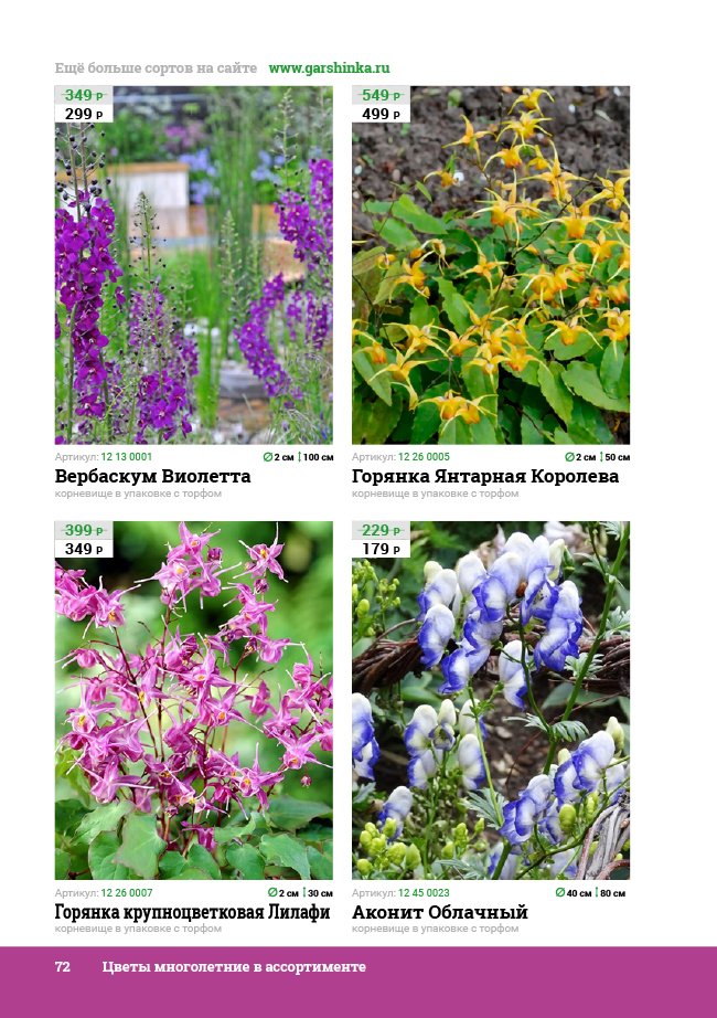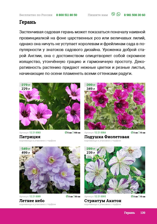 В новом универсальном и наиболее подробном каталоге мы представляем широкий ассортимент посевного и посадочного материала из отечественных и зарубежных питомников. Товарное предложение составлено только из высококачественных семян, эксклюзивных саженцев роз, плодовых и декоративных кустарников, хвойных растений, корневищных и луковичных многолетников, экзотических и любимых многими садоводами культур, способных придать любому возделываемому уголку облик нарядного цветущего сада.