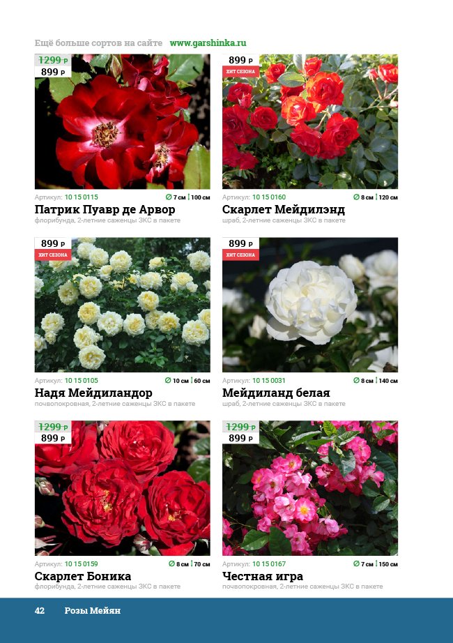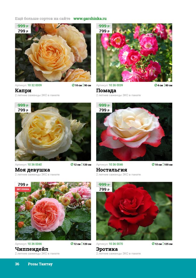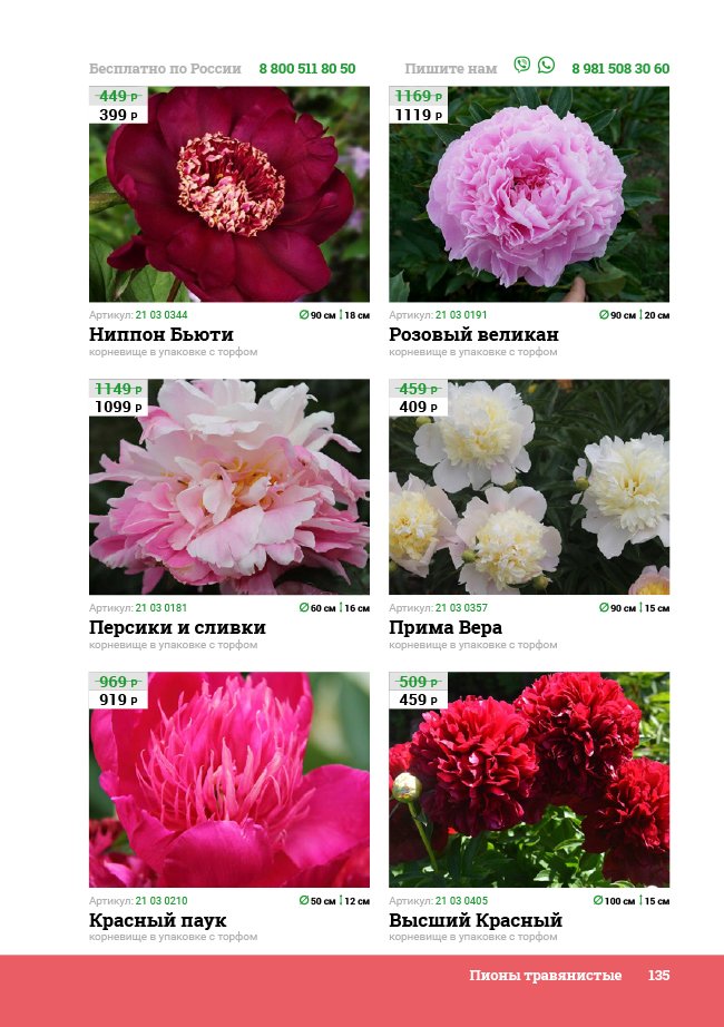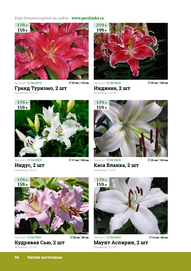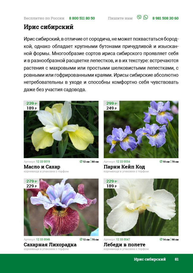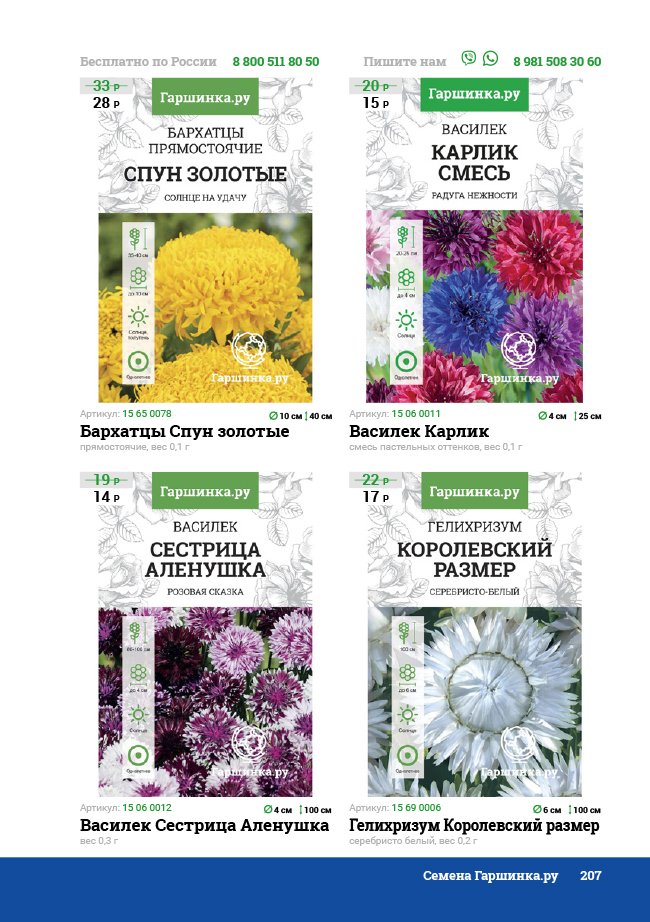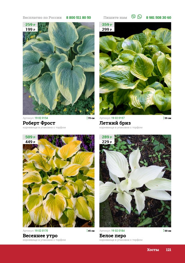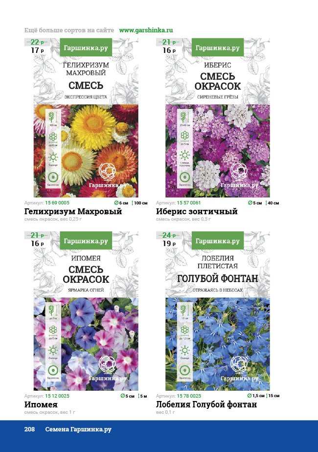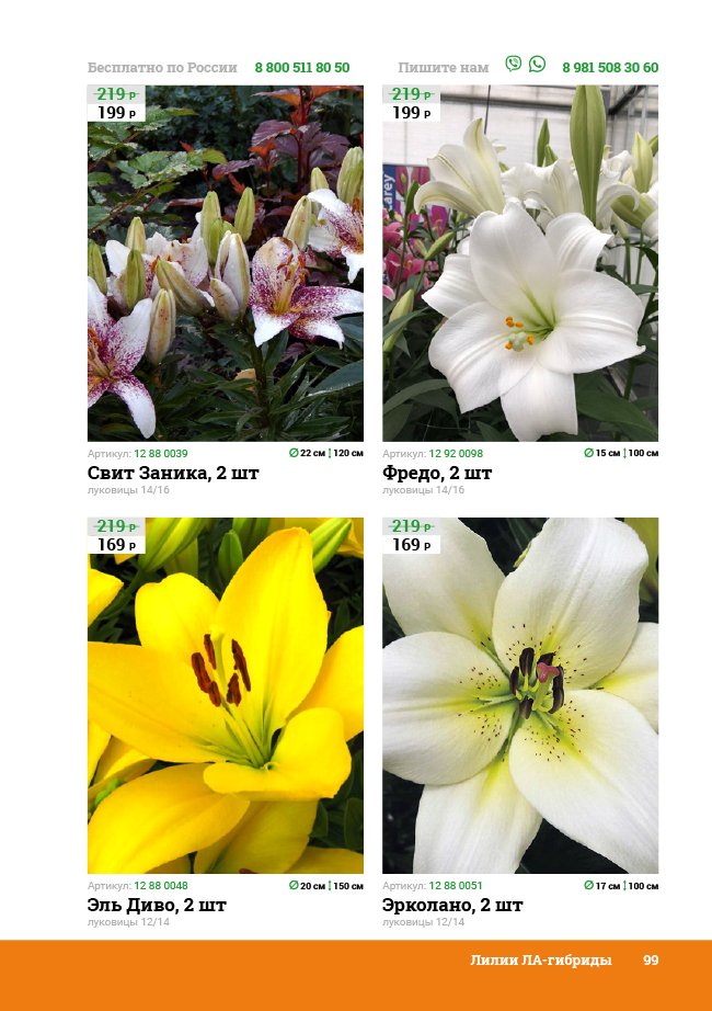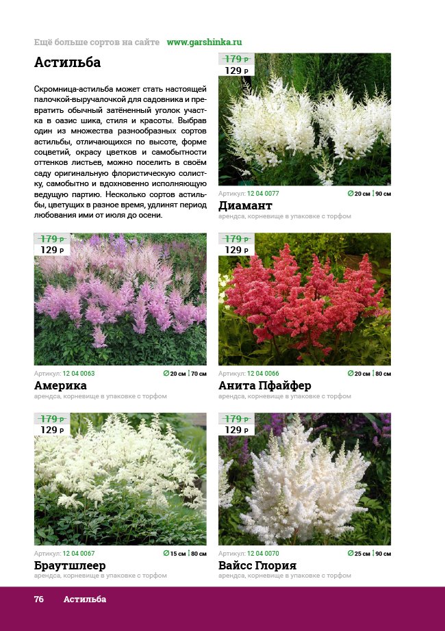 В новом универсальном и наиболее подробном каталоге мы представляем широкий ассортимент посевного и посадочного материала из отечественных и зарубежных питомников. Товарное предложение составлено только из высококачественных семян, эксклюзивных саженцев роз, плодовых и декоративных кустарников, хвойных растений, корневищных и луковичных многолетников, экзотических и любимых многими садоводами культур, способных придать любому возделываемому уголку облик нарядного цветущего сада.