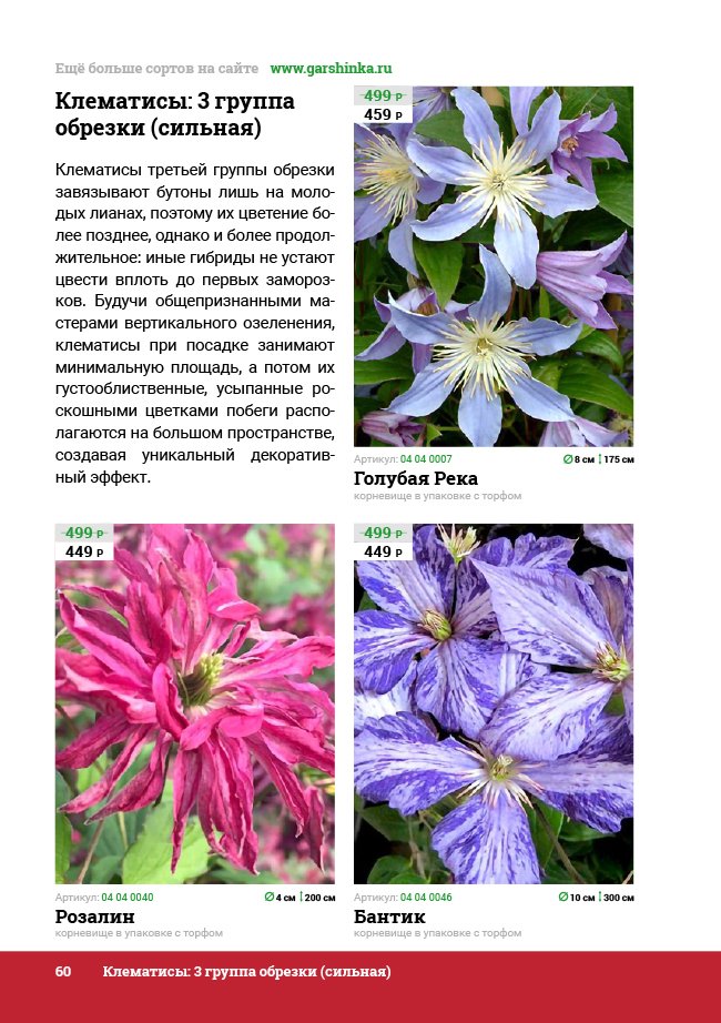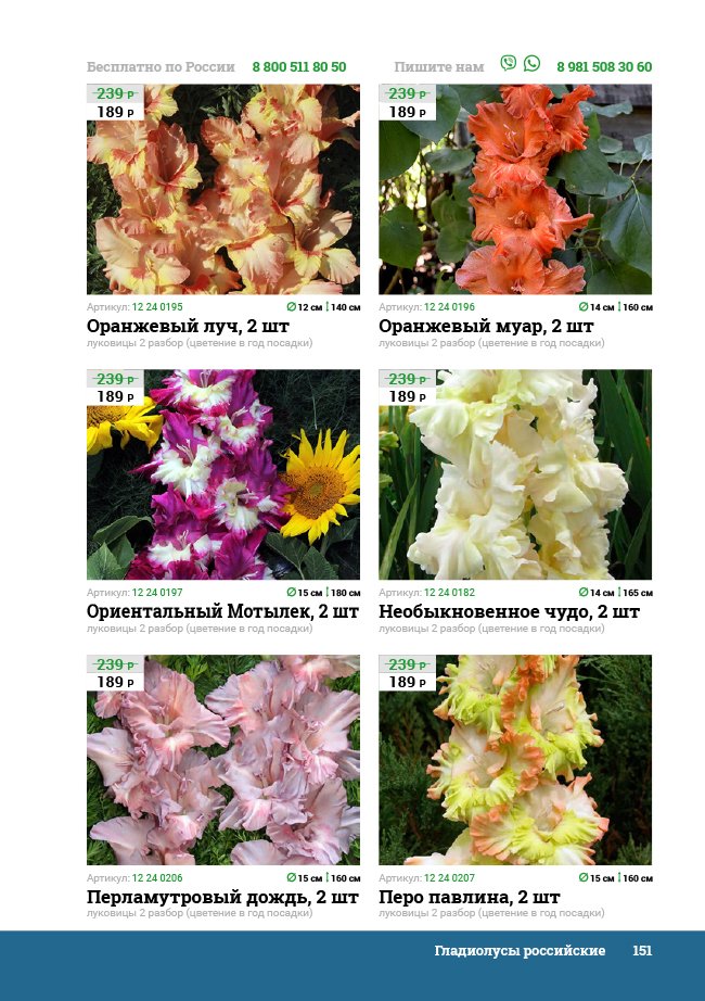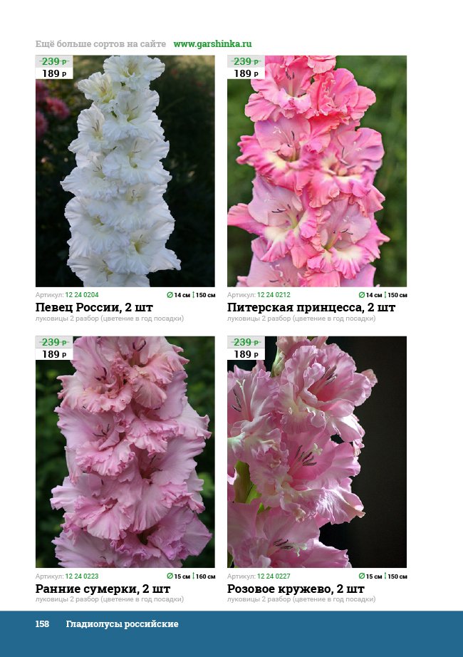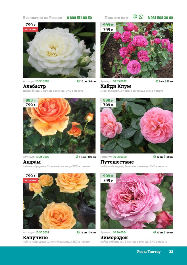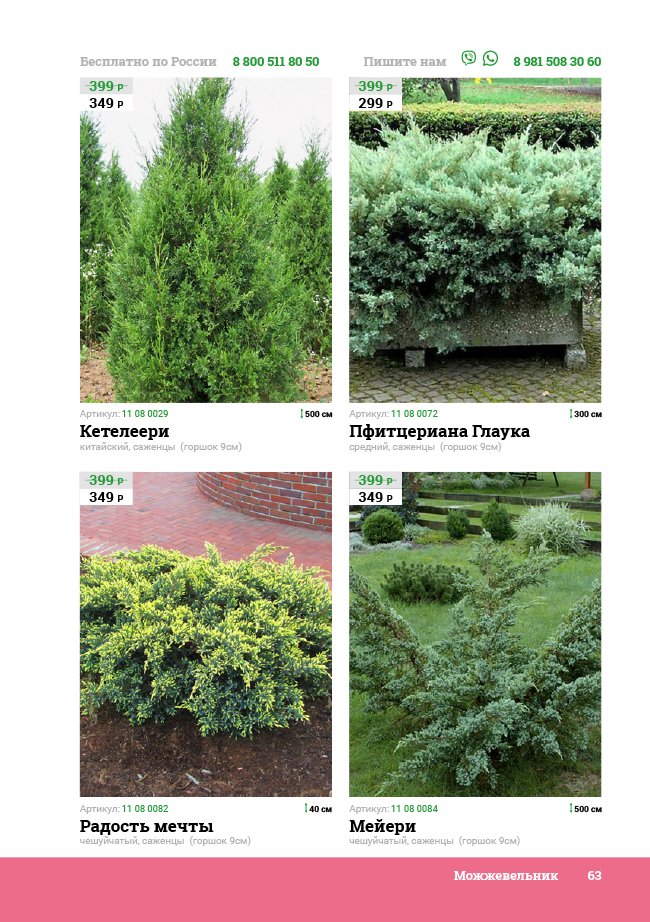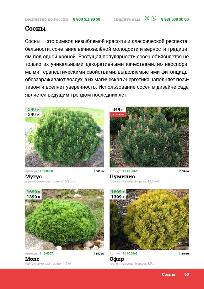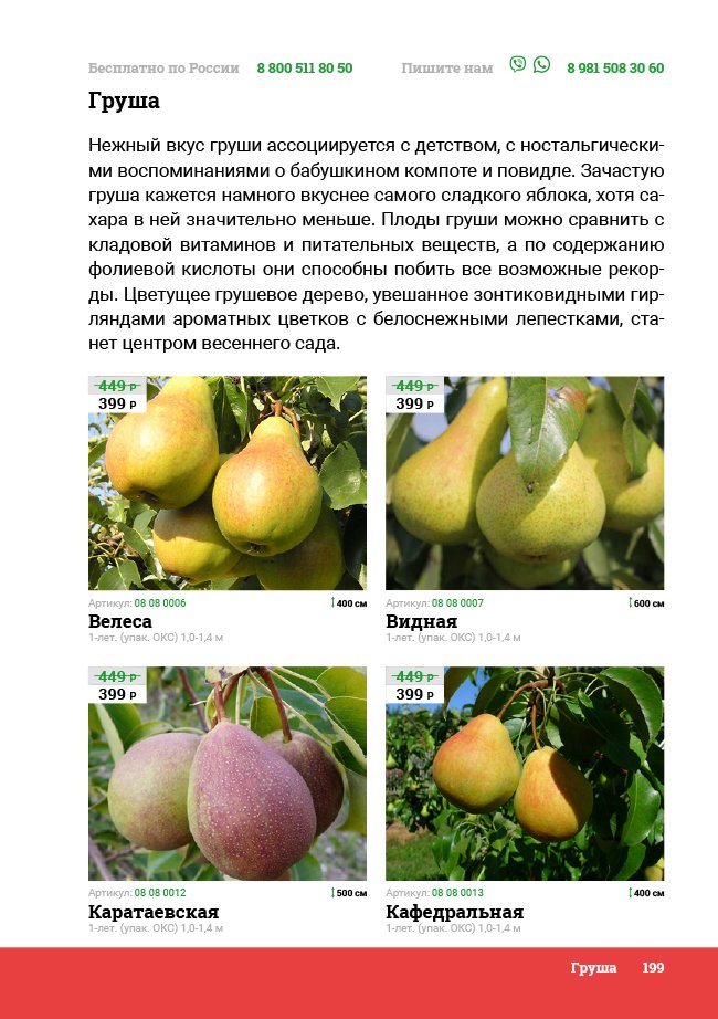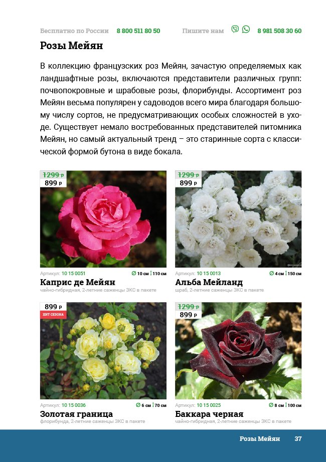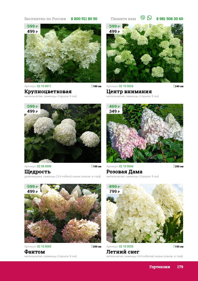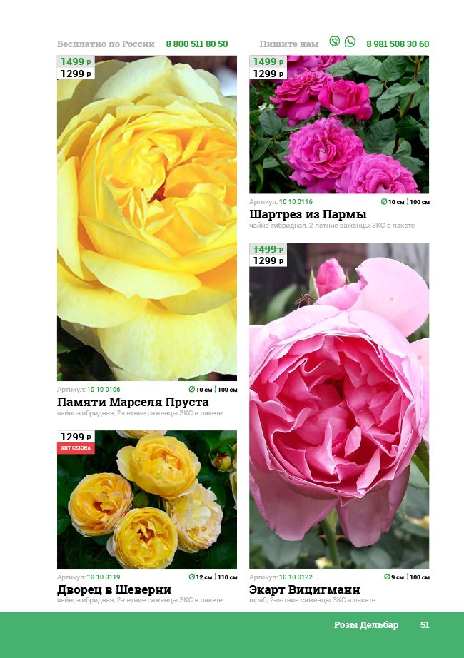 В новом универсальном и наиболее подробном каталоге мы представляем широкий ассортимент посевного и посадочного материала из отечественных и зарубежных питомников. Товарное предложение составлено только из высококачественных семян, эксклюзивных саженцев роз, плодовых и декоративных кустарников, хвойных растений, корневищных и луковичных многолетников, экзотических и любимых многими садоводами культур, способных придать любому возделываемому уголку облик нарядного цветущего сада.