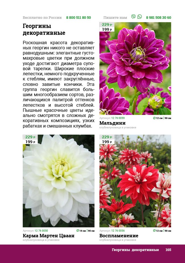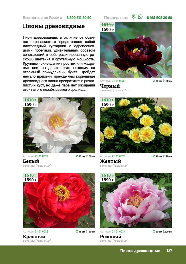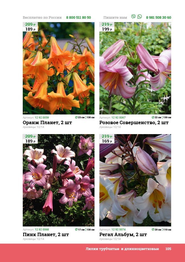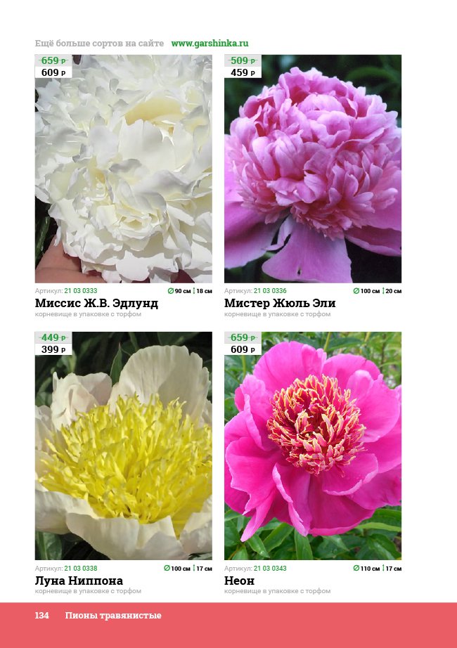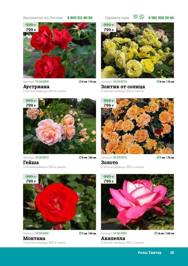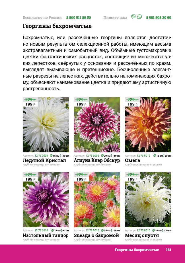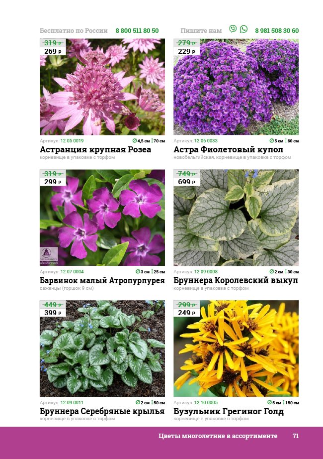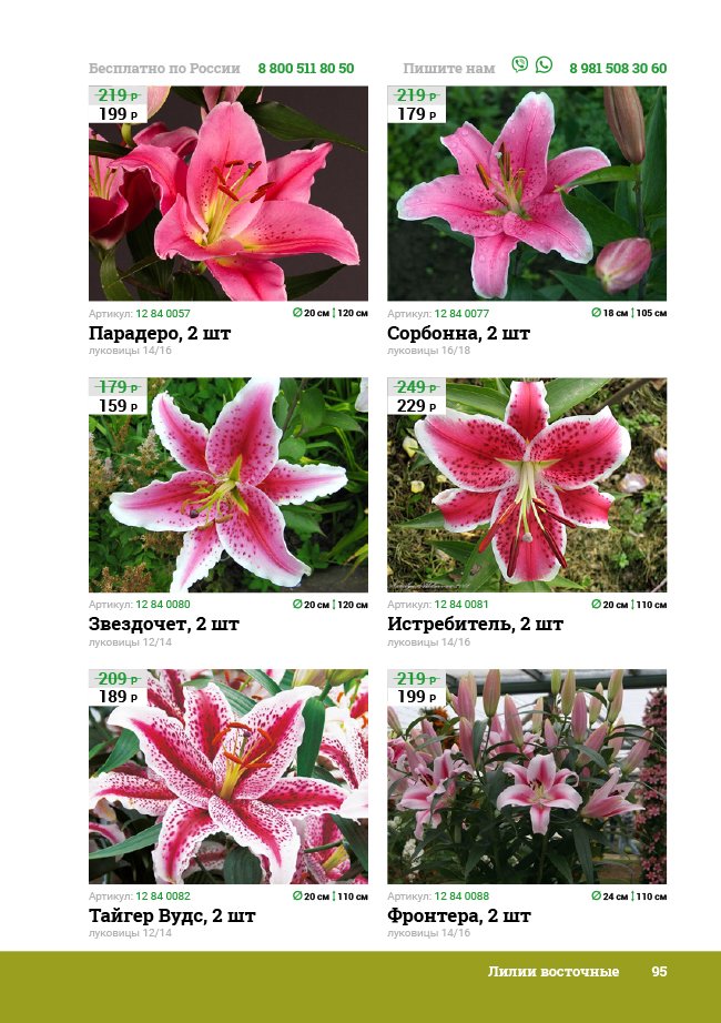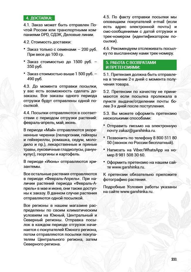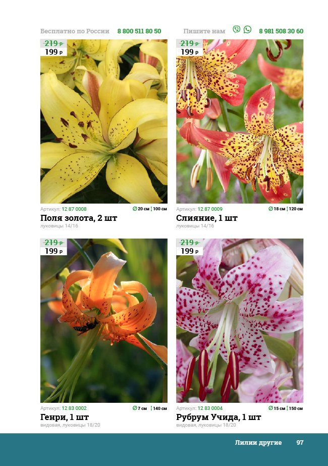 В новом универсальном и наиболее подробном каталоге мы представляем широкий ассортимент посевного и посадочного материала из отечественных и зарубежных питомников. Товарное предложение составлено только из высококачественных семян, эксклюзивных саженцев роз, плодовых и декоративных кустарников, хвойных растений, корневищных и луковичных многолетников, экзотических и любимых многими садоводами культур, способных придать любому возделываемому уголку облик нарядного цветущего сада.