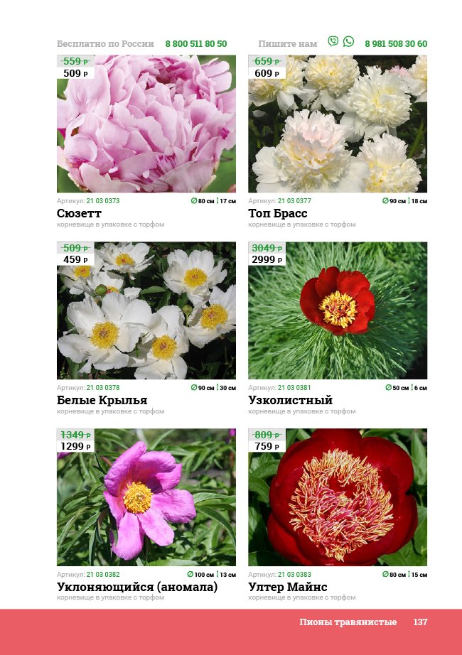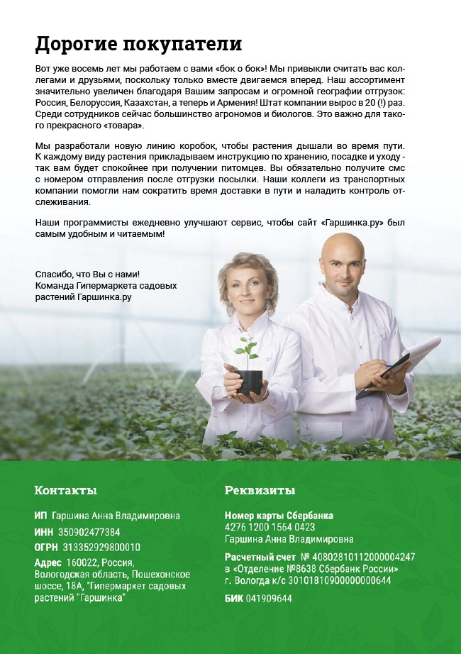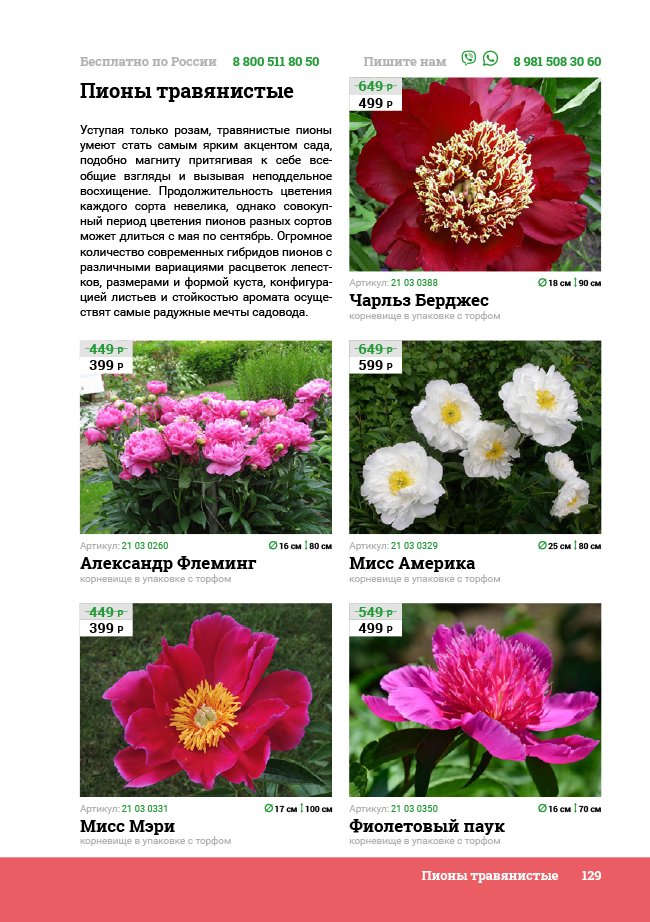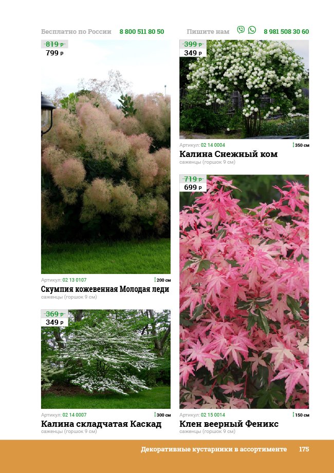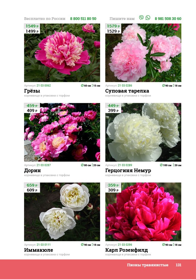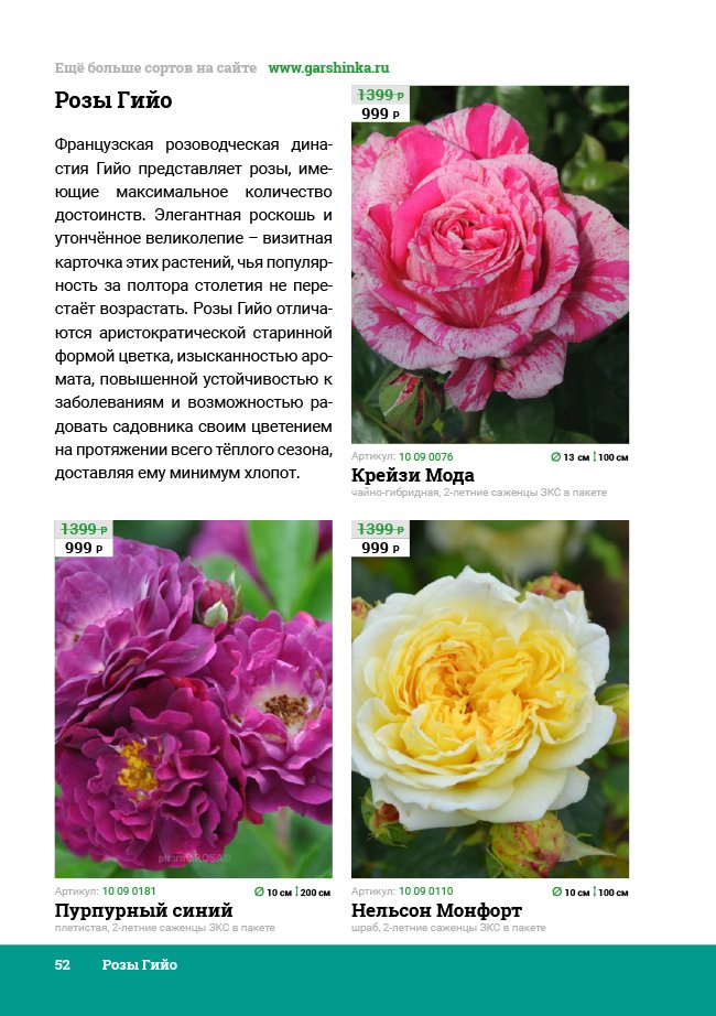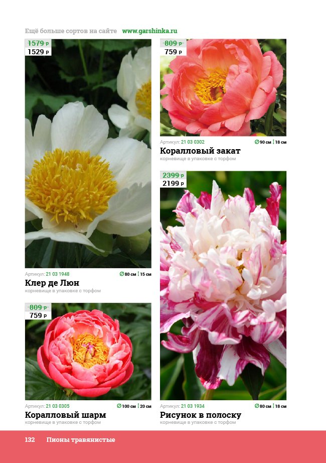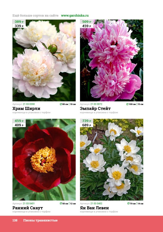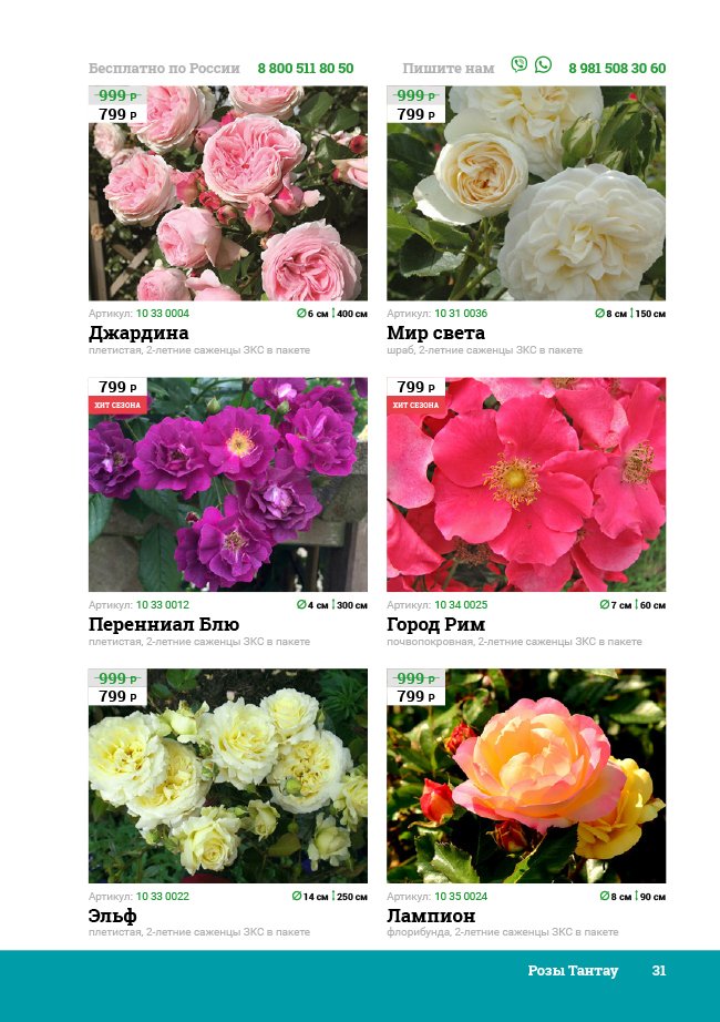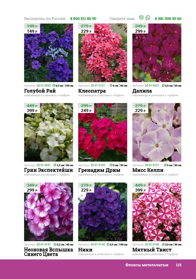 В новом универсальном и наиболее подробном каталоге мы представляем широкий ассортимент посевного и посадочного материала из отечественных и зарубежных питомников. Товарное предложение составлено только из высококачественных семян, эксклюзивных саженцев роз, плодовых и декоративных кустарников, хвойных растений, корневищных и луковичных многолетников, экзотических и любимых многими садоводами культур, способных придать любому возделываемому уголку облик нарядного цветущего сада.