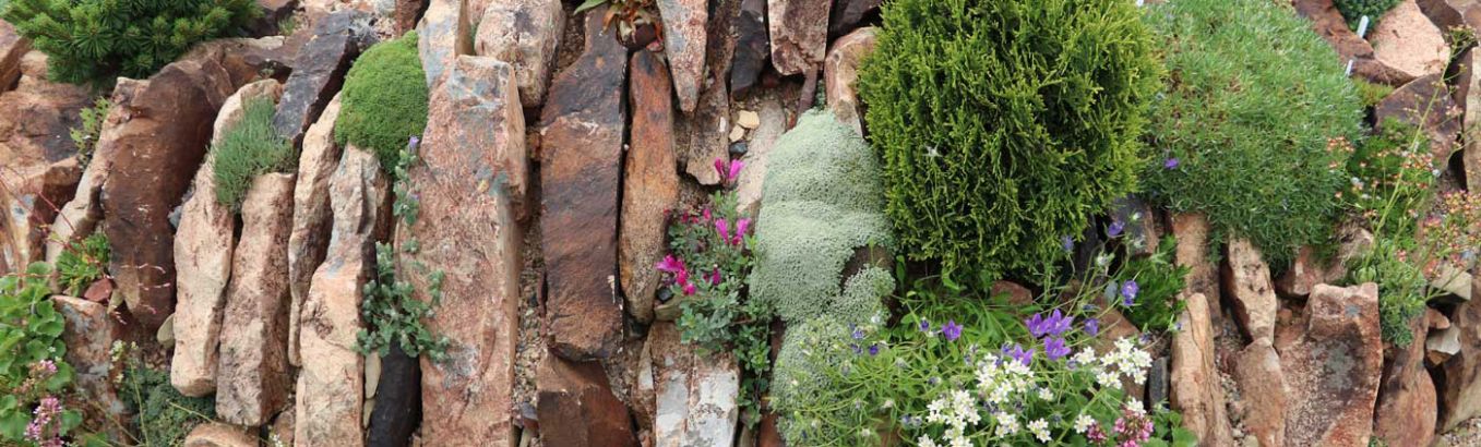 Каменные склоны чешской скалки дополняют типичные представители горной флоры, которые максимально приспособлены к условиям природы: они стойко переносят засуху и не требовательны к составу почвы и уходу. Неприхотливые культуры должны обладать высокой декоративностью на протяжении всего сезона. Предпочтения отдаются медленно растущим и эффектно цветущим многолетникам, способным формировать импровизированные плотные подушки и холмики. Интересным решением станет посадка низкорослых хвойных и лиственных деревьев и кустарников.