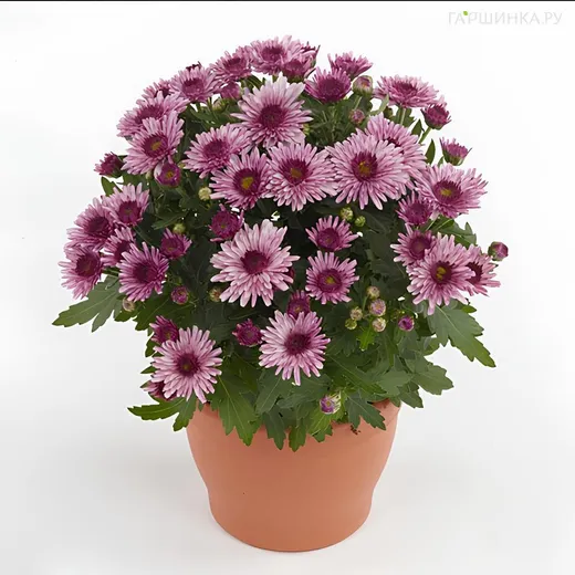 Хризантема мультифлора Подиум Пинк Биколор - отличается потрясающими махровыми (полноцветковыми) бутонами фиолетового и темно-фиолетового оттенков. Диаметр цветка составляет от 4 до 4,5 сантиметра, что делает его компактным, но при этом эффектным растением. Листья темно-зеленые, перисто-рассеченные, шириной от 2 до 3 сантиметров и длиной от 5 до 7,5 сантиметров. Подходит для высадки в бордюрах, контейнерах или в качестве центрального элемента на клумбе.
