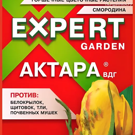 Актара, ВДГ - инсектицид для защиты картофеля от колорадского жука; смородины – от тли; цветочных культур – от тли, белокрылки, трипсов, щитовок, ложнощитовок, почвенных мушек. Быстро воздействует на вредителей (в течение 1 часа). Имеет длительный защитный эффект (до 2-х недель). Эффективен против скрытоживущих и питающихся на нижней стороне листа насекомых. Работает при любых погодных условиях (жара, дождь, резкие перепады температуры). Можно использовать в жилых помещениях, отсутствует неприятный запах. Низкая норма расхода.