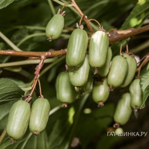 Актинидия Коломикта Великански - древовидная, листопадная лиана. Женская форма. Высота лианы 4,0 - 5,0 м., она нуждается в опоре. Плоды очень крупные, длиной 5-7 см, продолговатые, желто-зеленые, ароматные, собраны в пучки по 2-3 штуки. Цветы имеют лимонный аромат. Листья пестрые. Aктинидия коломикта "Великански" (Velikanski) богата витамином С. Для образования плодов требуется опыление мужскими растениями. Предпочитает плодородные умеренно влажные почвы. Не любит сквозняков.