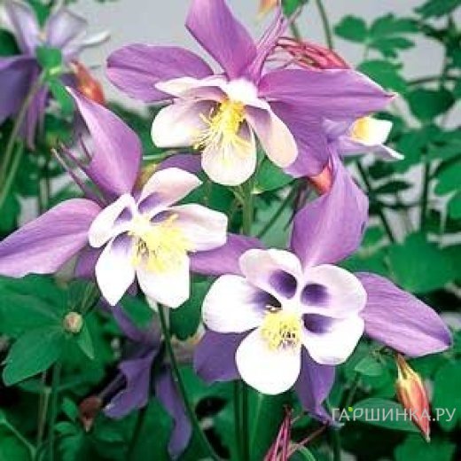 Аквилегия гибридная Сван Лавендер - обильноцветущий сорт, подходящий для срезки. Сорт отличается интересной окраской цветков. Сиреневые чашелистики отлично сочетаются с белоснежными лепестками. Цветки аквилегии крупные, нарядные. Цветет очень обильно.