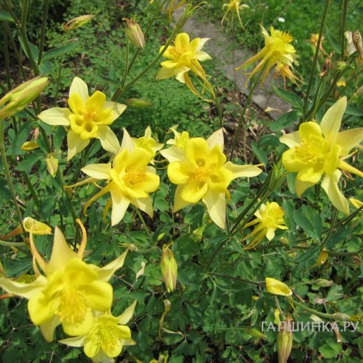 Аквилегия Еллоу Квин - отличается яркими, крупными цветками лимонно-желтого цвета. Этот сорт покоряет своей необычностью. Цветки аквилегии Yellow Queen очень крупные, снаружи лепестки ярко-желтые, внутри - лимонные. Сорт - выходец из Америки, на это указывает наличие шпорцев длиной 3-4 см. Куст высокий, стебли прямостоячие, прочные, достигают высоты 80-100 см. Листья светло-зеленые. Цветет в июне-июле.