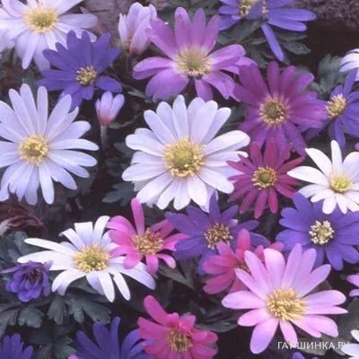 В первые теплые дни весны на приусадебных участках можно увидеть нежные и красивые цветы, название которым – анемоны или ветреницы. Анемона (Ветреница) Бланда Микс 8шт - зацветает в начале мая и цветет около трех недель. Это растение горное, ареал распространения – Кавказ, Балканы и Малая Азия. Предпочитает плодородные влажные известковые почвы. Корневая система ветреницы нежной – бесформенное клубневидное корневище. Из почек его верхней части весной отрастают нежные стебельки высотой 15–20 см с красиво рассеченными листьями. На конце каждого стебелька – «ромашка», одиночное соцветие-корзинка диаметром до 7 см. Кустик растения изящен и воздушен. Цветки основного вида – сине-фиолетовые. Выведено несколько десятков сортов с различной окраской цветков.