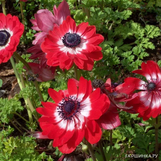 Анемона Говернор достигает высоты около 30-40 см, что делает ее идеальной для создания ярких акцентов в цветниках и бордюрах. Растение отличается прямостоячими и крепкими побегами, которые не нуждаются в дополнительной опоре. Листья у анемоны рассеченные, насыщенного зеленого цвета, что придает ей декоративный вид даже вне периода цветения.