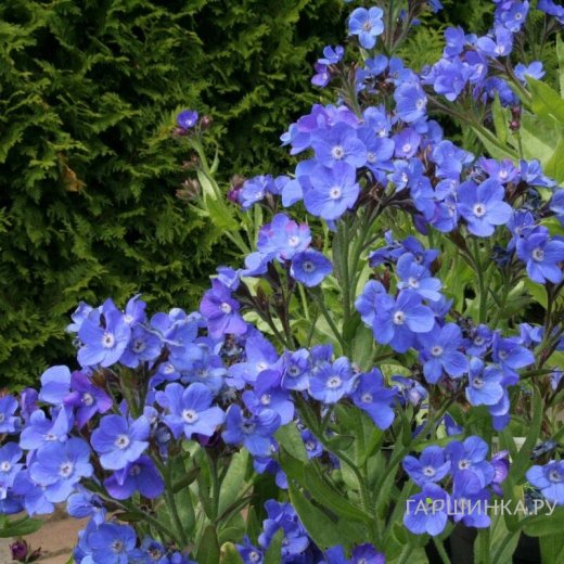 Анхуза азуреа Лоддон Роялист - очень изящный неприхотливый многолетник. Формирует полураскидистые кустики высотой до 90 см, шириной до 45 см. Стебли прямостоячие, толстые, листья опушенные, продолговато-ланцетные. Цветки голубые до 1,5 см в диаметре, образуют рыхлые соцветия. Цветет в июле-августе.