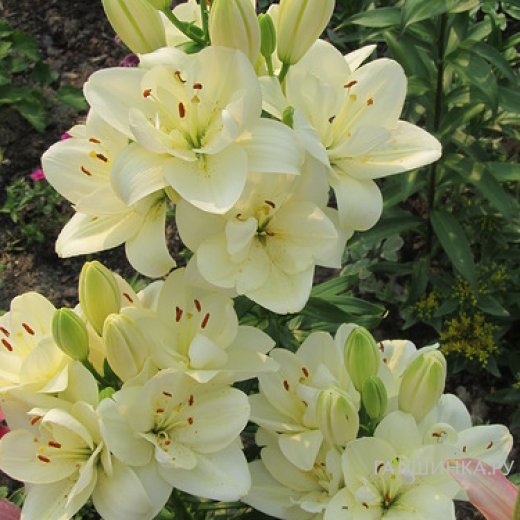 Лилия Аннемари Дрим азиатская махровая - Цветок крупный махровый. Лепестки кремово-белой окраски. Высота растения 60 см. Цветки лилии 15 см в диаметре. Период цветения июнь-июль.