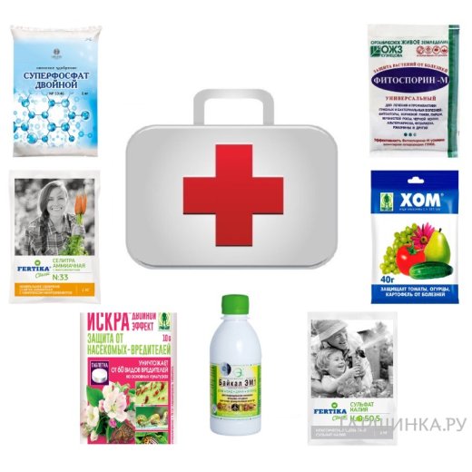 Аптечка универсальная №1 включает в себя полный комплекс препаратов, предназначенных для ухода за растением и его питания: