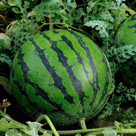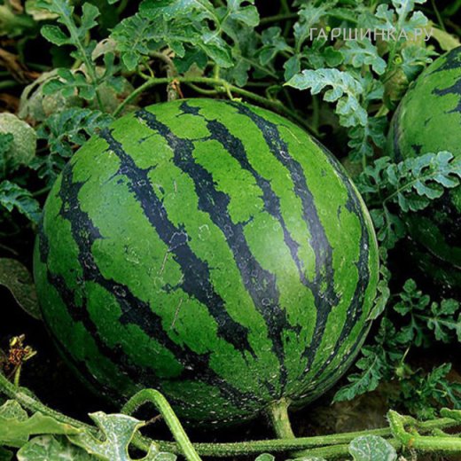 Самый ранний гибрид. Созревает уже через 60 дней после посева. Плоды массой до 5 кг зеленого цвета с темными полосами с малым количеством мелких семян. Мякоть насыщенно-красная, очень сочная и сладкая. Высадка 30-ти дневной рассады в открытый грунт - после окончания заморозков. Когда плоды достигнут размера грецкого ореха необходимо удалять все новые завязи, оставив первые 4-6, самые крупные. В открытом грунте на теплой грядке созревает даже в Якутии.