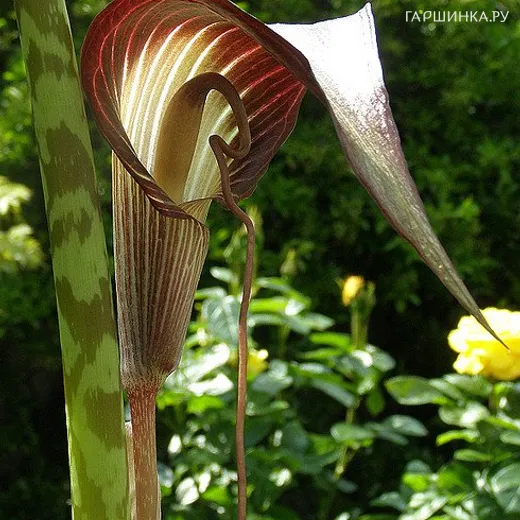 Аризема изящная - многолетнее травянистое растение семейства Ароидные. Стебель подземный, на конце образуется шаровидный клубень. Лист перисто, пальчато рассеченный, простой или овальный, форма может меняться. Соцветие одиночное - оптическая ловушка насекомых. Плод красный, обратнояйцевидный, блестящий. Высокая декоративность обеспечивается своеобразным соцветием и яркими плодами.