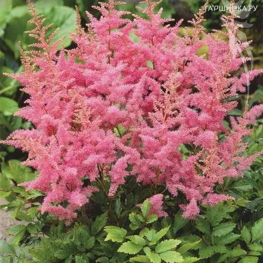 Астильба Арендса Хайзинс - многолетнее корневищное растение. Высота до 80 см. Листья длинной до 50 см, весной зеленые с бурым краем. Соцветие плотное, длиной 20 см, метельчатое, бледно-фиолетовое. Тычинки фиолетовые, пестики бледно-розовые. Цветение пышное, начинается с середины июля.