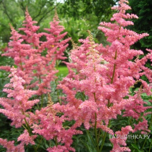 Астильба арендса Анита Пфайфер – многолетнее корневищное растение(выведенный в 1930 году). Высота взрослого растения: чаще всего от 60 до 80 см., редко - до 100 см.; ширина: от 50 до 80 см. Листья сложные (непарно-перисторассечённые); при распускании (весной) - коричневато-зелёные, затем - летом - они становятся тёмно-зелёными. Цветки мелкие, насыщенно-розовые; собраны в плотные метельчатые соцветия. Цветки имеют лёгкий, приятный аромат. Астильба цветёт обильно, с конца июня по июль (около 30 дней).