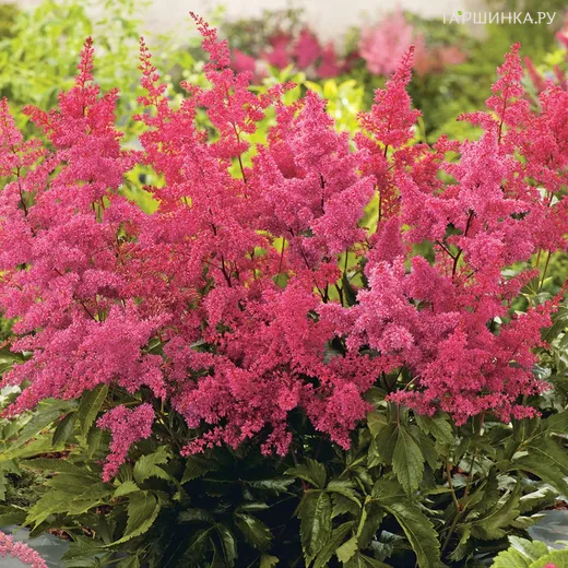 Астильба Арендса Ред Шарм - это изысканное декоративное растение, которое привносит яркие акценты в любой сад благодаря своим насыщенно-красным соцветиям. Это многолетнее травянистое растение относится к семейству Камнеломковых и отличается кустистым типом роста. Взрослые экземпляры достигают высоты 60-100 см, образуя густые куртины с ажурной листвой. Листья темно-зеленые, сложные, с зубчатыми краями, придают кусту пышность и декоративность на протяжении всего сезона.