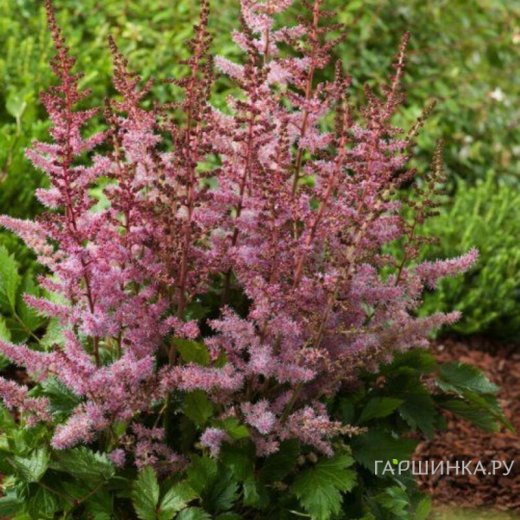 Астильба китайская Вероника Клоз– многолетнее корневищное растение. Высота 40-60 см. Цветки тёмно-розово-лиловые, ромбической формы. Окраска листьев весной — зеленая, края листочков бурые. Отличается более поздним цветением в августе - сентябре.