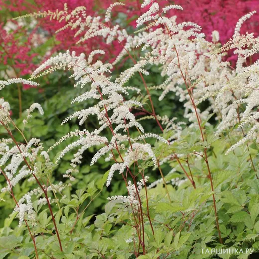 Листья астильбы сложные, с зубчатыми краями, темно-зеленого цвета, что создает прекрасный контраст с яркими соцветиями. Соцветия метельчатые, густые, имеют белоснежную окраску, что придает растению особую декоративность. Цветение астильбы Профессор ван ден Вилен приходится на июль-август, что позволяет наслаждаться ее красотой в разгар лета.