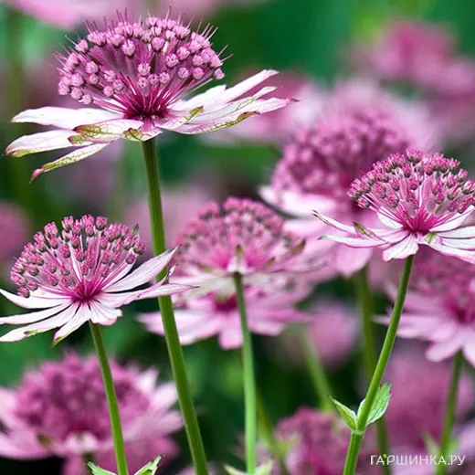 Астранция Розеа крупная – корневищный неприхотливый многолетник. Высота 70 см. Окраска цветка пастельно - розовая. Соцветие зонтик, простой, 4.5 см.