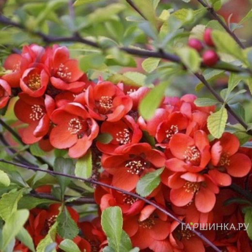 Айва Ред Трейл - невысокий раскидистый кустарник, яркоцветущий в конце весны. Ветви дугообразные, несколько наклонные, с колючками и с частично стелющимися побегами. Высота взрослого растения 0,8-1 м, диаметр кроны 1 м. Молодые побеги вначале зеленые, опушенные, затем коричнево-серые. Листья продолговатые, темно-зеленые, блестящие летом, желтые - осенью. Цветы ярко-красные, медоносные, одиночные или собраны по несколько штук, до 3 см. в диаметре, цветет в мае. Плоды до 5 см. в диаметре, съедобные, зеленые, по мере созревания (сентябрь-октябрь) желтеют.
