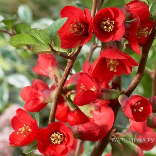 Айва Тексас Скарлет — это декоративное растение, которое привлекает внимание своими яркими цветами и плодами. Этот кустарник, относящийся к семейству розоцветных, является прекрасным решением для создания живых изгородей и декоративных композиций в саду. Жизненная форма растения — листопадный кустарник, который достигает высоты до 1,5 метров. Тип роста умеренный, что позволяет ему гармонично вписываться в различные садовые ландшафты. Побеги растения густые и крепкие, но без шипов и колючек, что облегчает уход за ним.