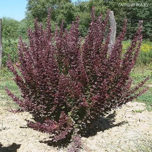 Барбарис тунберга Red Rocket привлекает внимание своей необычной формой и насыщенным бордово-красным цветом листвы. Этот компактный кустарник достигает высоты 1,5 метра, формируя узкую колонновидную крону шириной до 0,6 метра. Барбарис тунберга красный сорта Ред Рокет отличается от других разновидностей вертикальным ростом побегов и плотной кроной.