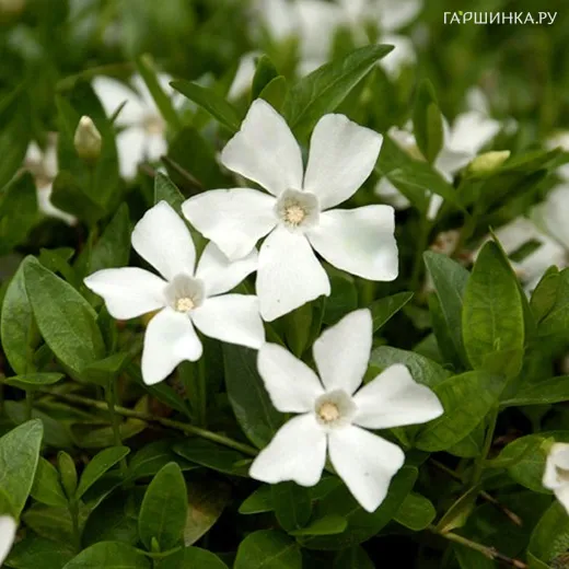 Барвинок малый Гертруда Джекил - стелющийся вечнозеленый неприхотливый многолетник с небольшими изящными белыми цветками.