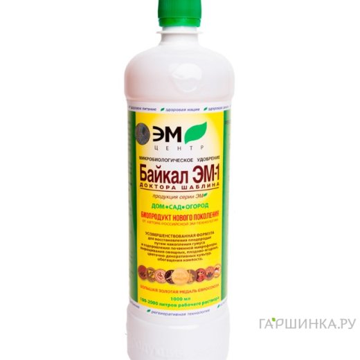 «Байкал ЭМ-1» - готовый микробиологический препарат, включает симбиотический саморегулирующийся комплекс заведомо отобранных природных регенеративных микроорганизмов, в том числе фотосинтезирующих, молочнокислых, фиксирующих азот, сахаромицетов, продуктов их жизнедеятельности и жидкость, получаемую при культивировании.
