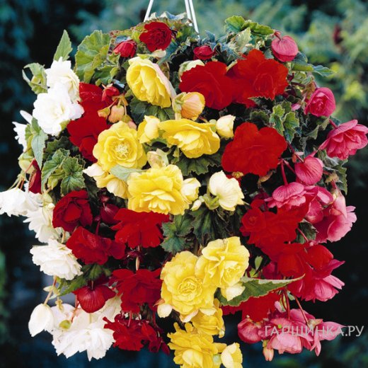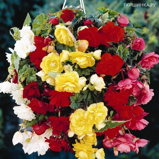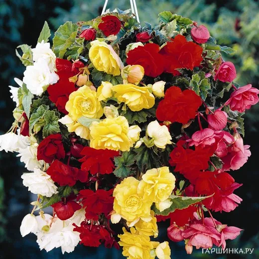 Бегония Пендула Микс - кустовая клубневая бегония. Подвид, клубневая ампельная бегония. Длина побегов достигает 30 см, при высоте кустов 20 см. Свисающие длинные побеги с нежными, ассиметричными, зелеными листьями, достигают 25-30 см. Цветок махровый или обычный, насыщенного цвета. Представлены все оттенки красного, белого и желтого цвета. Цветут с июня по сентябрь.
