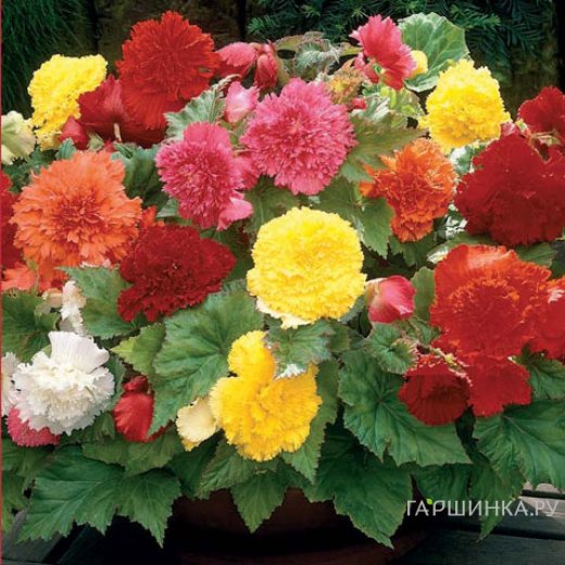 Бегония бахромчатая Фимбриата Микс - кустовая клубневая бегония. Кусты высотой 40 см, с прямостоячими стеблями. Соцветия крупные, бахромчатые, с разнообразной окраской, душистые, диаметром до 15 см. Цветут в июне-ноябре.