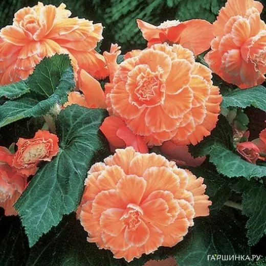 Бегония Пикоти Лейс Оранж 1шт - кустовая клубневая бегония, новый сорт. Длина побегов достигает до 30 см, при высоте кустов 20 см. Цветение бегонии клубневой пикоти приходится с мая по октябрь, образуя чудесные крупные цветы разнообразного оттенка с белой каймой по краям слегка волнистых лепестков. Диаметр цветка достигает 15-20 см, аромат нежный, легкий. Цветки махровые, гофрированные, насыщенного оранжевого цвета, с тонкой белой каймой, диаметром до 20 см.